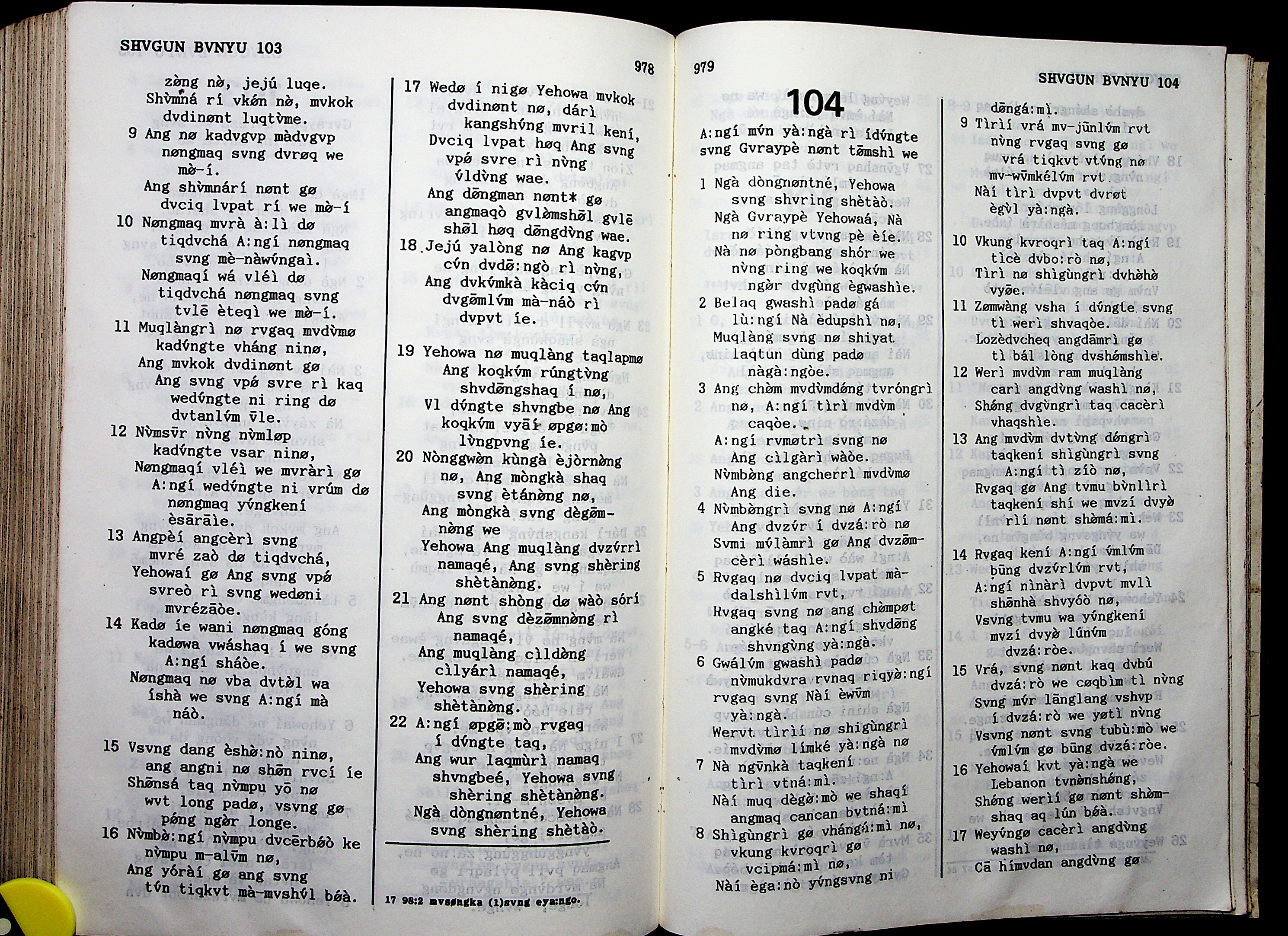 1950年独龙族新约与诗篇 诗篇 103 章 9 节到 104 章 17 节
