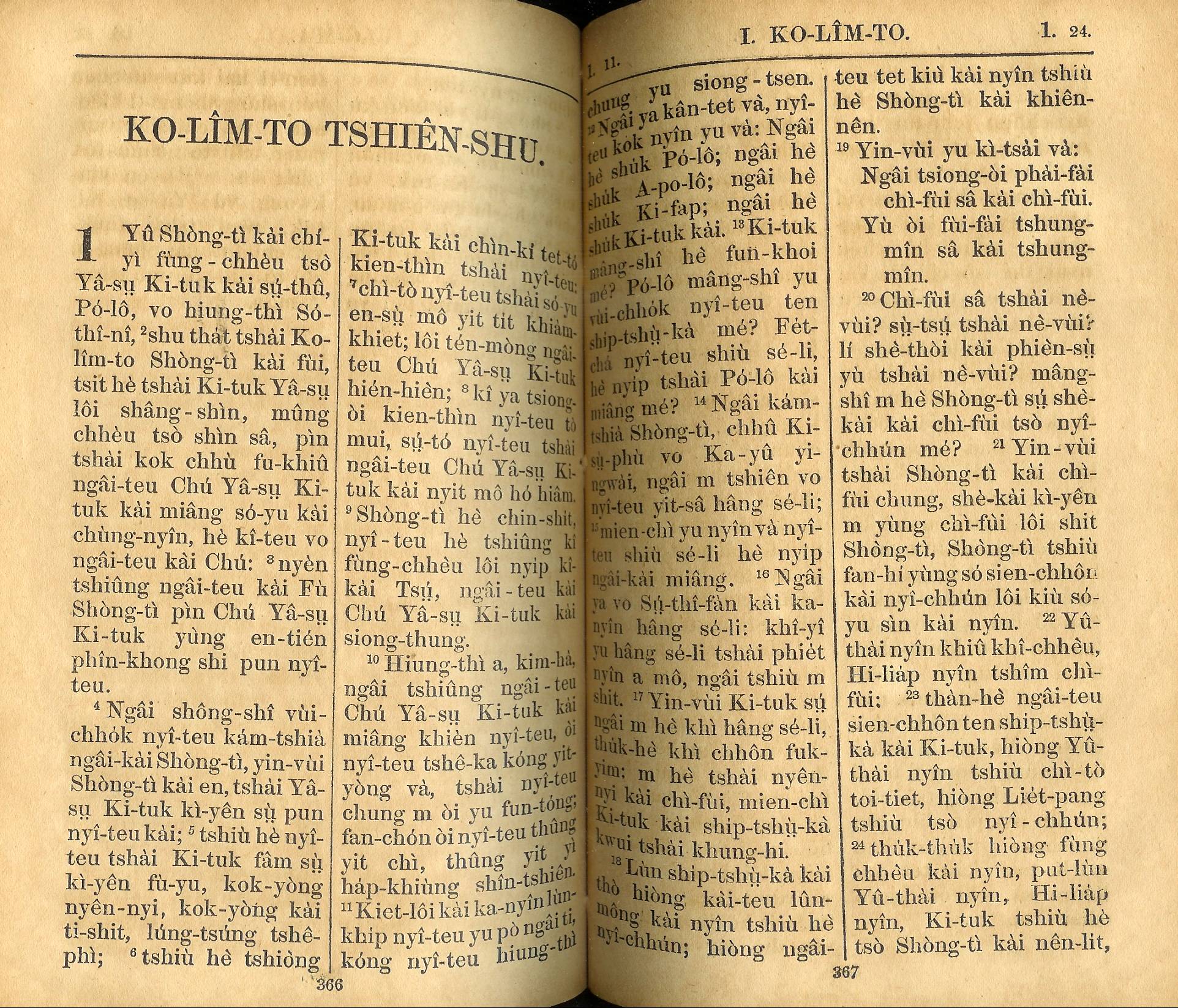 1924年新约全书 哥林多前书 1 章 1 节到 1 章 24 节