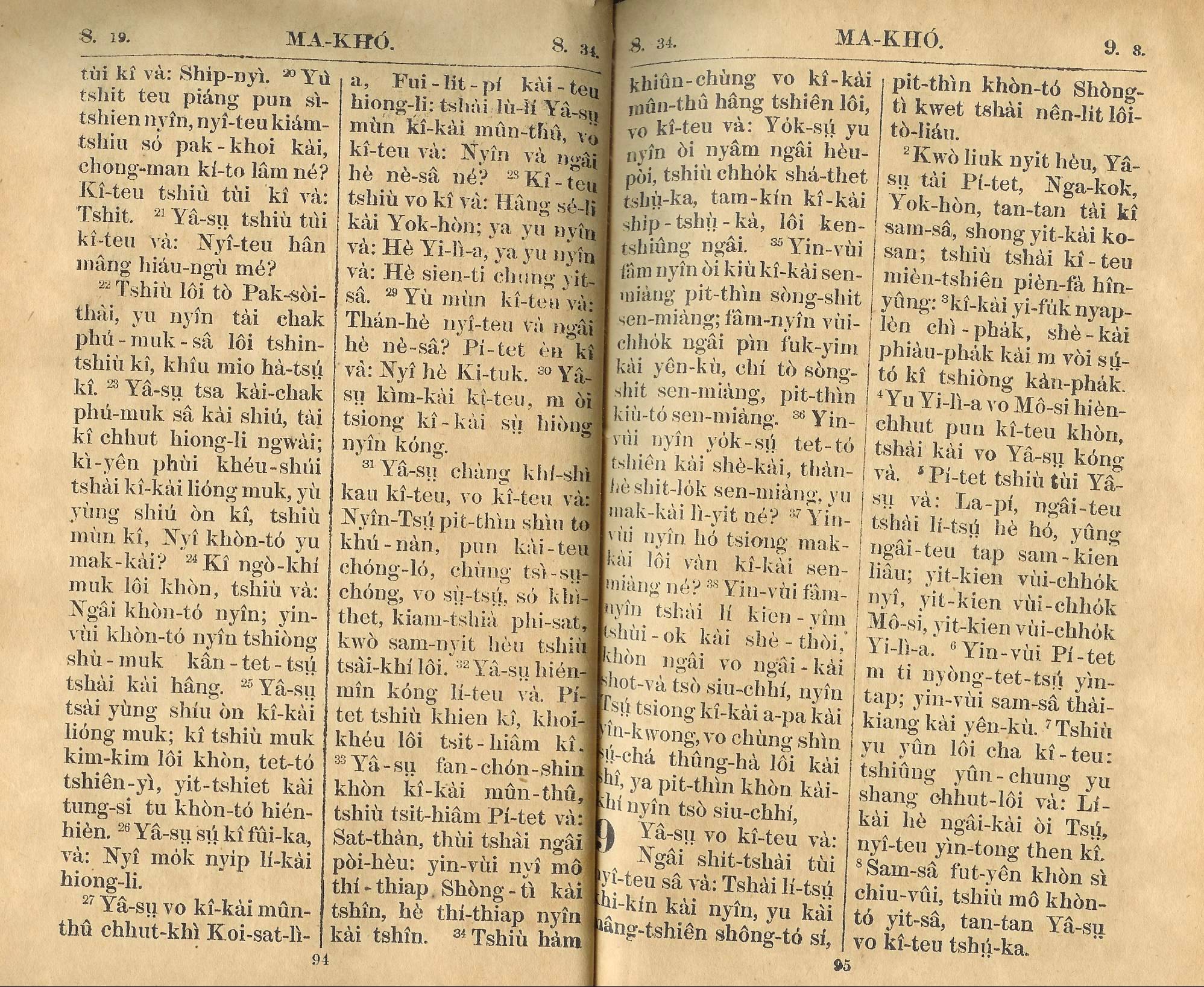 1924年新约全书 马可福音 8 章 19 节到 9 章 8 节