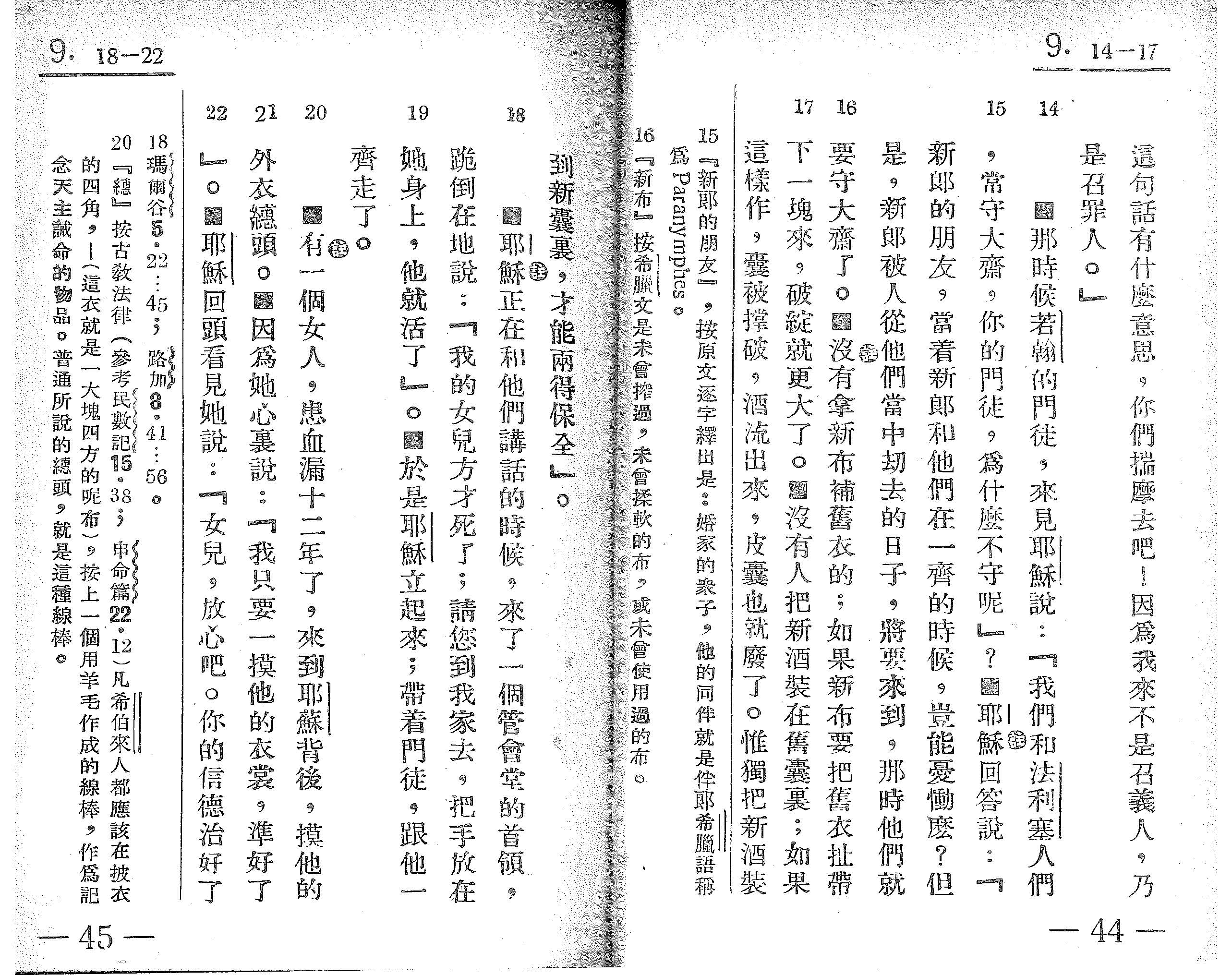 1939年萧舜华四福音、使徒行传与保罗书信 马太福音 9 章 14 节到 9 章 22 节