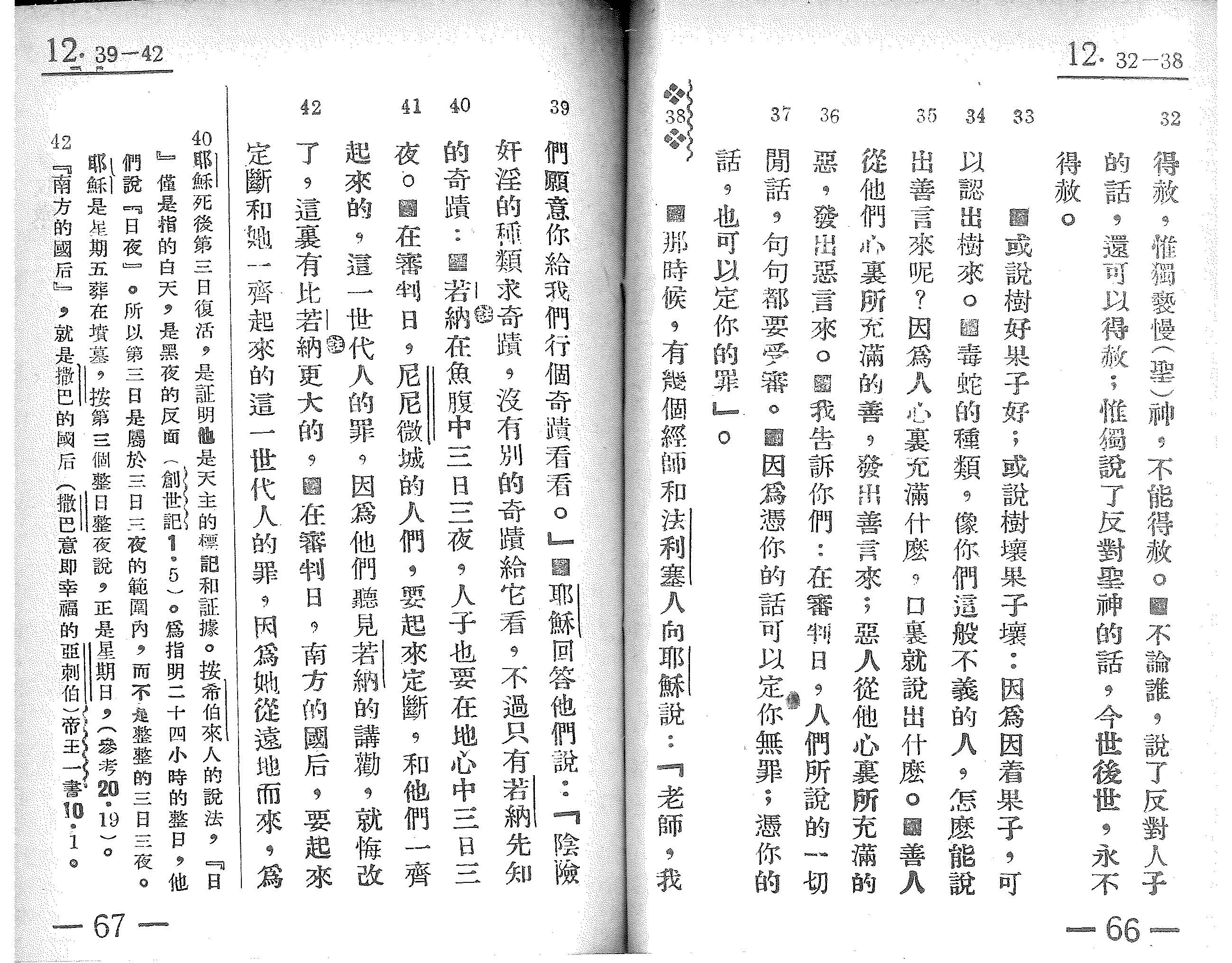 1939年萧舜华四福音、使徒行传与保罗书信 马太福音 12 章 32 节到 12 章 42 节
