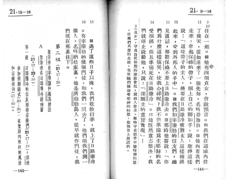 1939年萧舜华四福音、使徒行传与保罗书信 使徒行传 21 章 9 节到 21 章 16 节