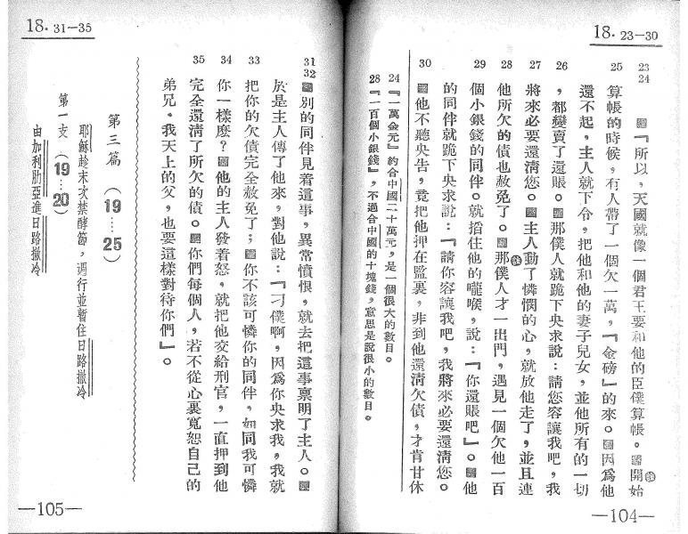 1939年萧舜华四福音、使徒行传与保罗书信 马太福音 18 章 23 节到 18 章 35 节