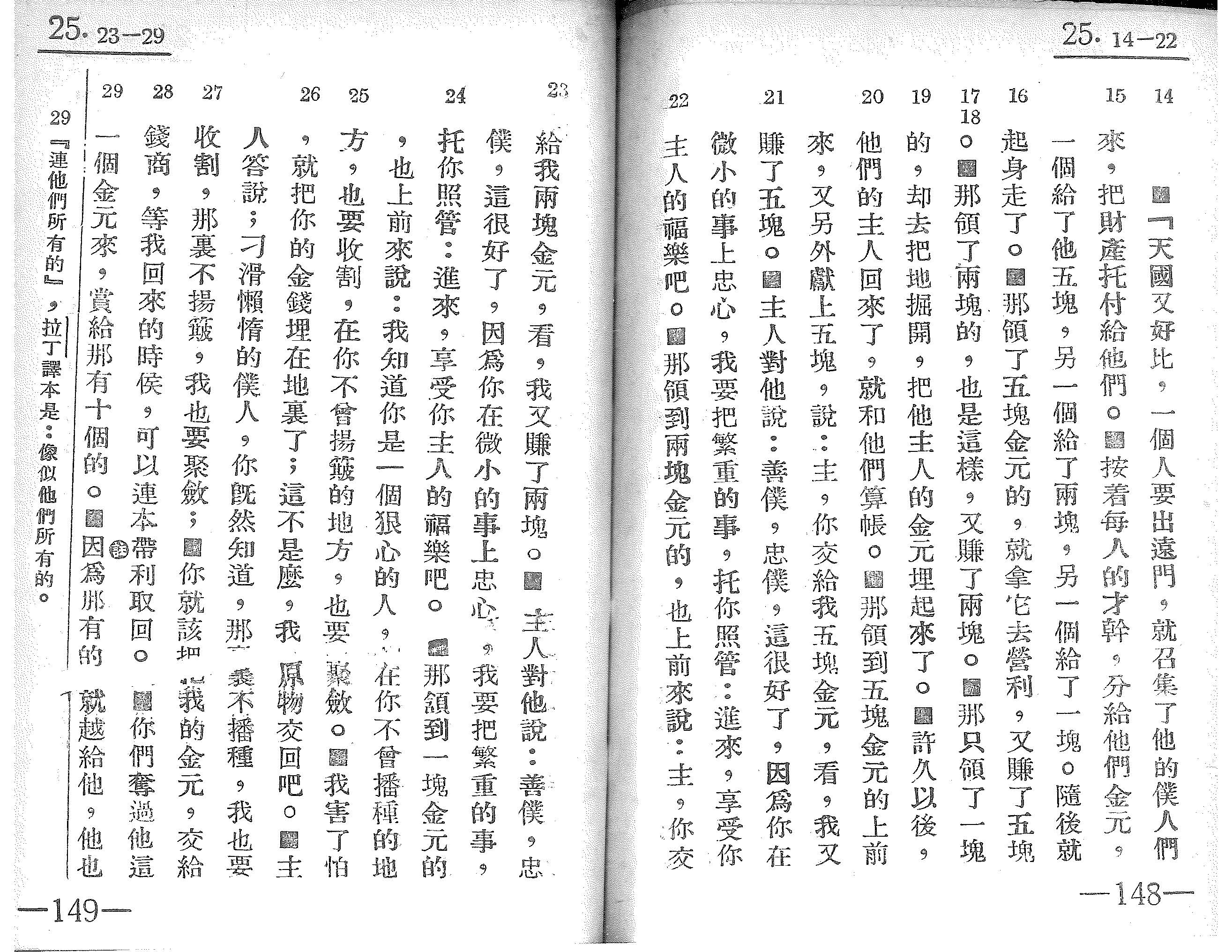 1939年萧舜华四福音、使徒行传与保罗书信 马太福音 25 章 14 节到 25 章 29 节