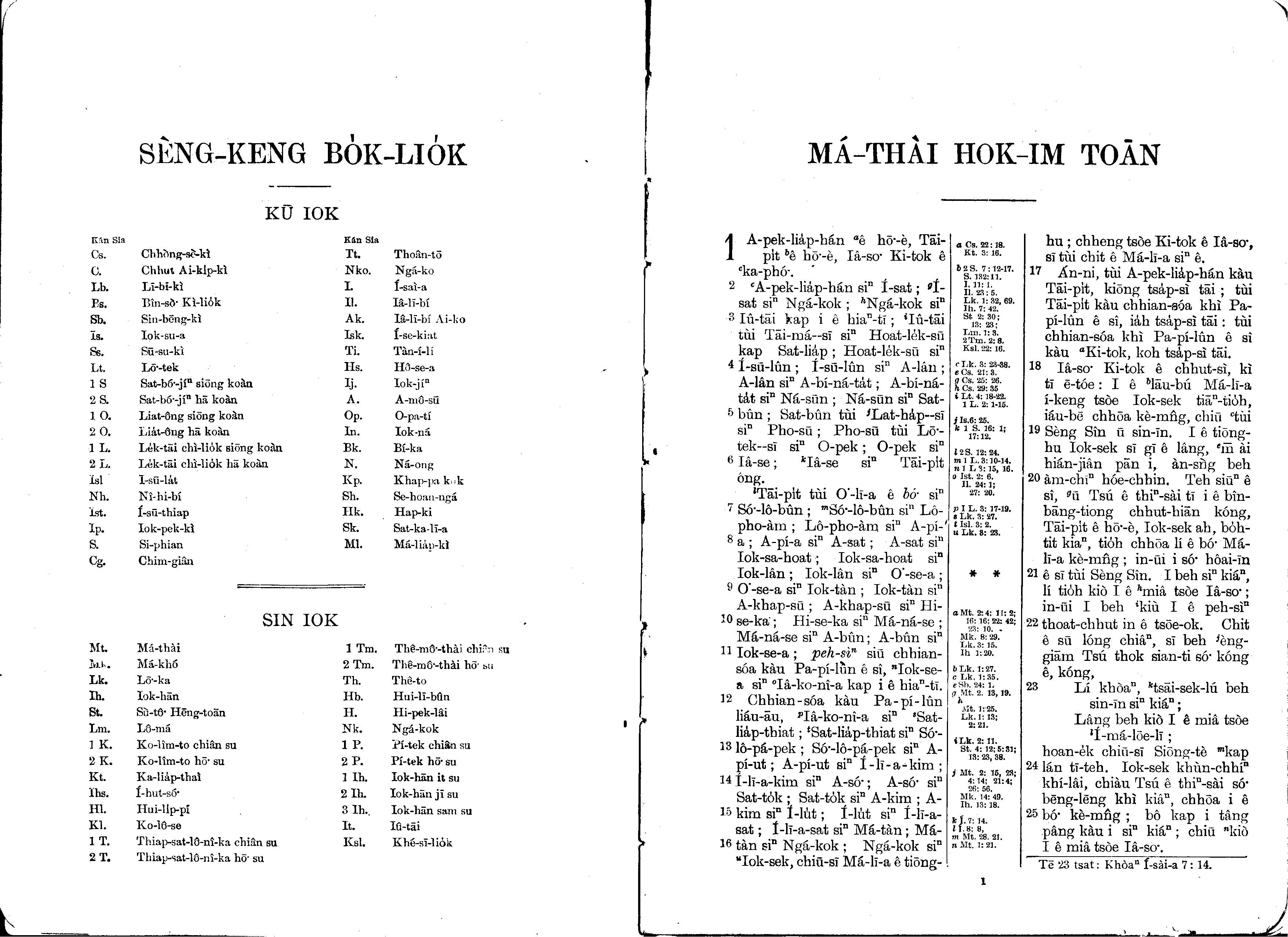 1930年马雅各旧约全书+巴克礼新约全书 马太福音 1 章 1 节到 1 章 25 节