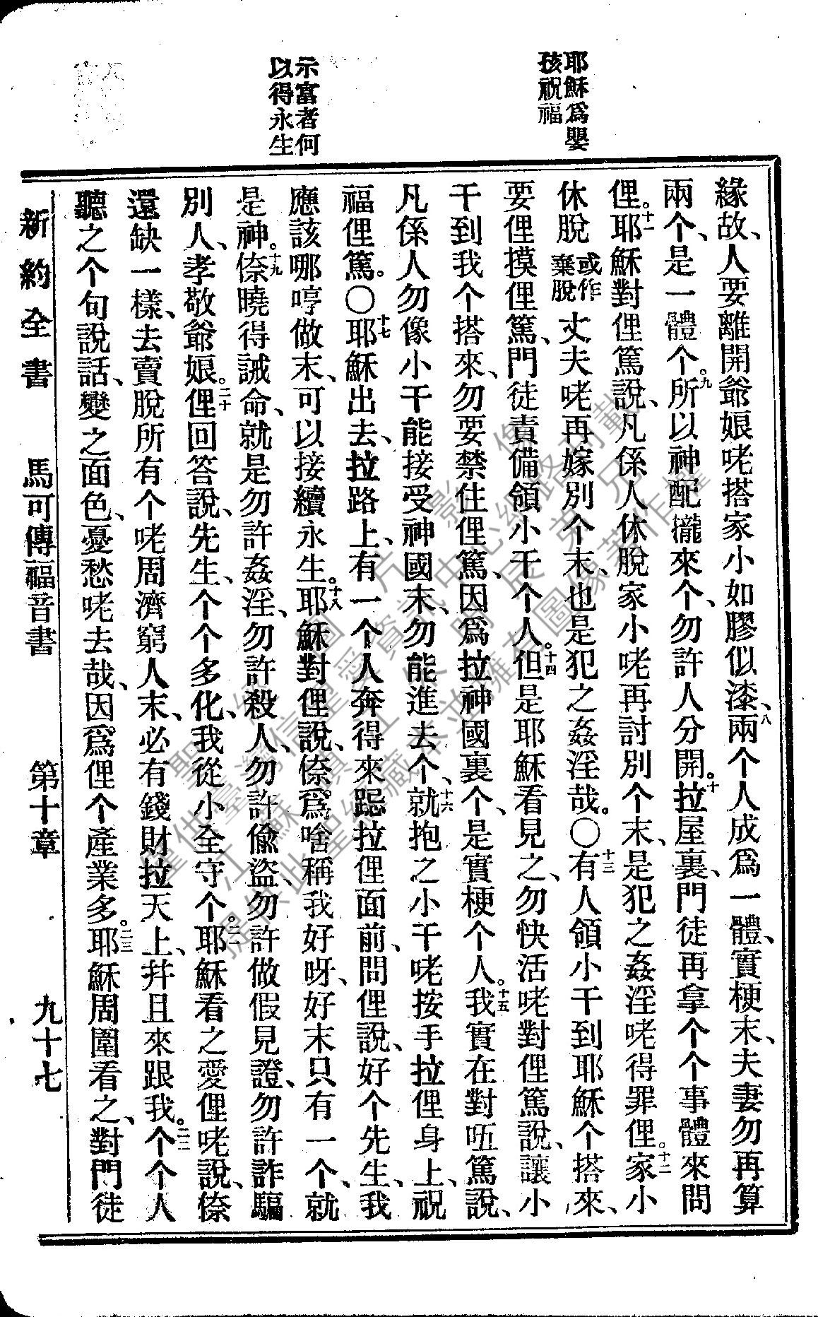 1922年新约全书 马可福音 10 章 8 节到 10 章 23 节