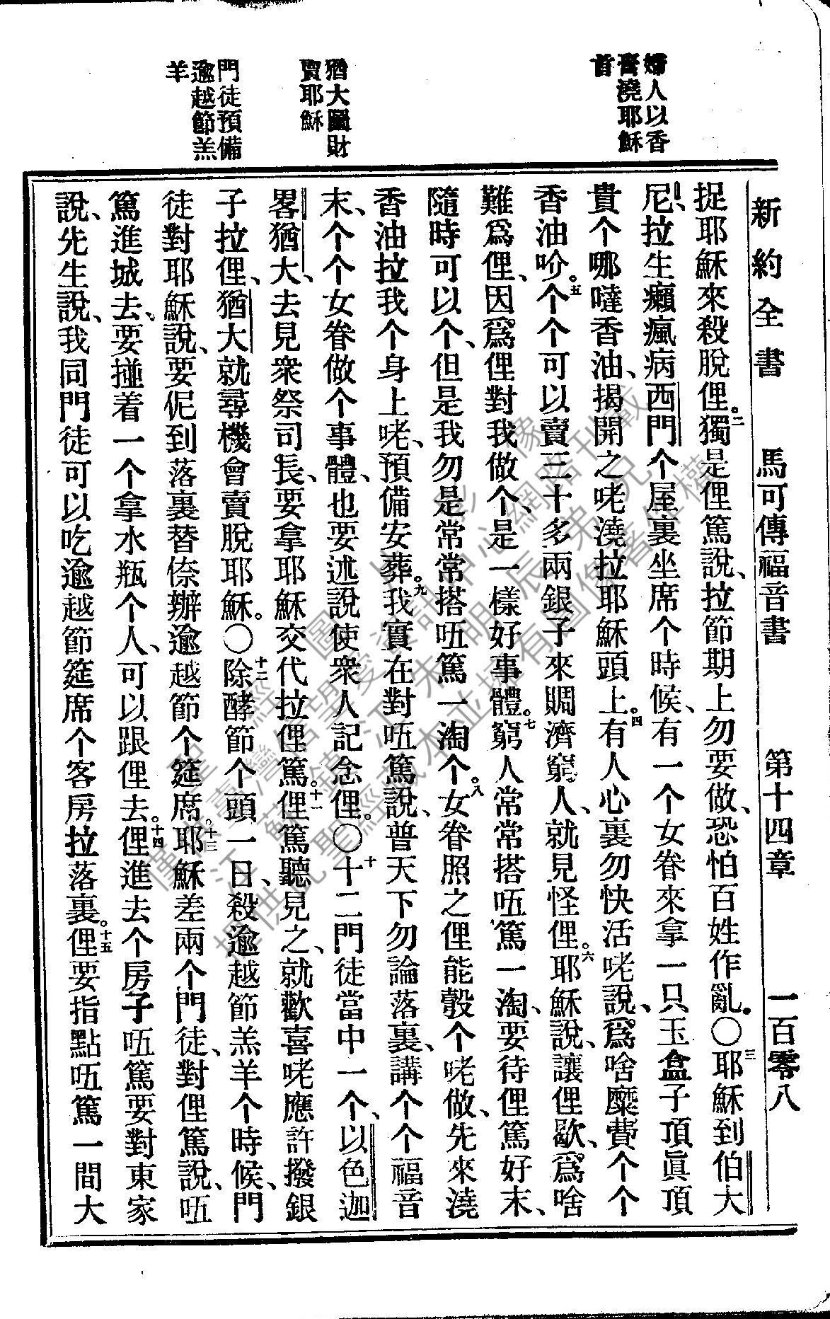 1922年新约全书 马可福音 14 章 2 节到 14 章 15 节