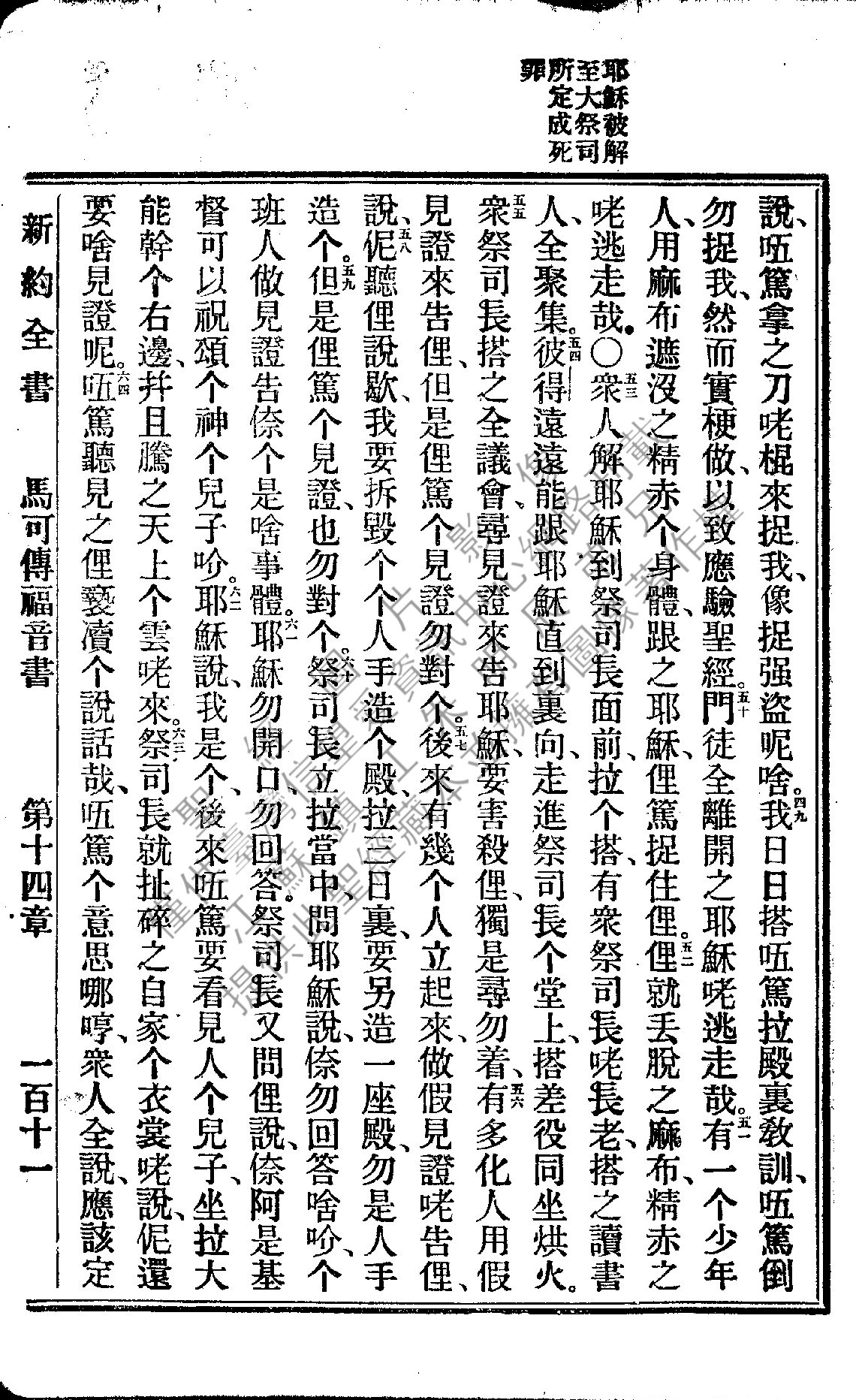 1922年新约全书 马可福音 14 章 49 节到 14 章 64 节
