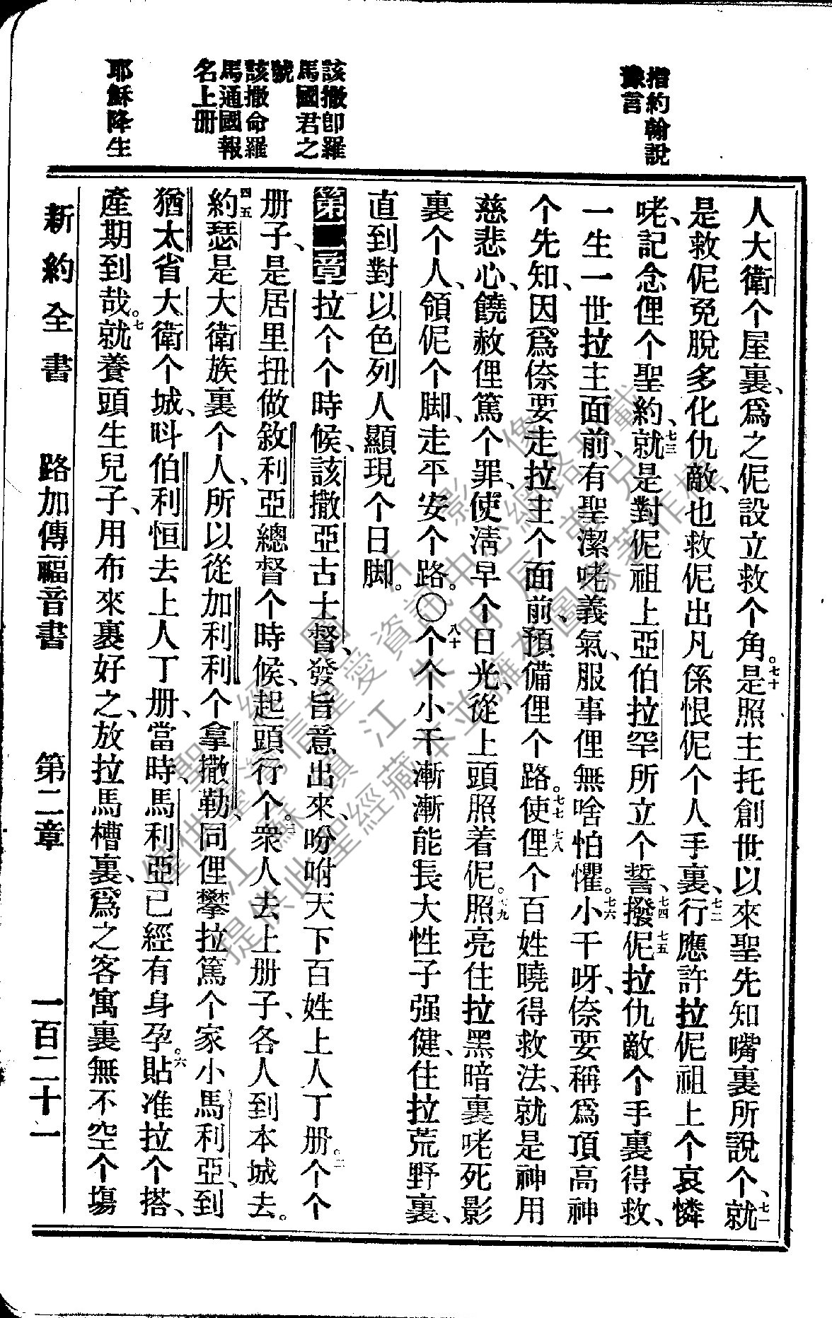 1922年新约全书 路加福音 1 章 70 节到 2 章 7 节