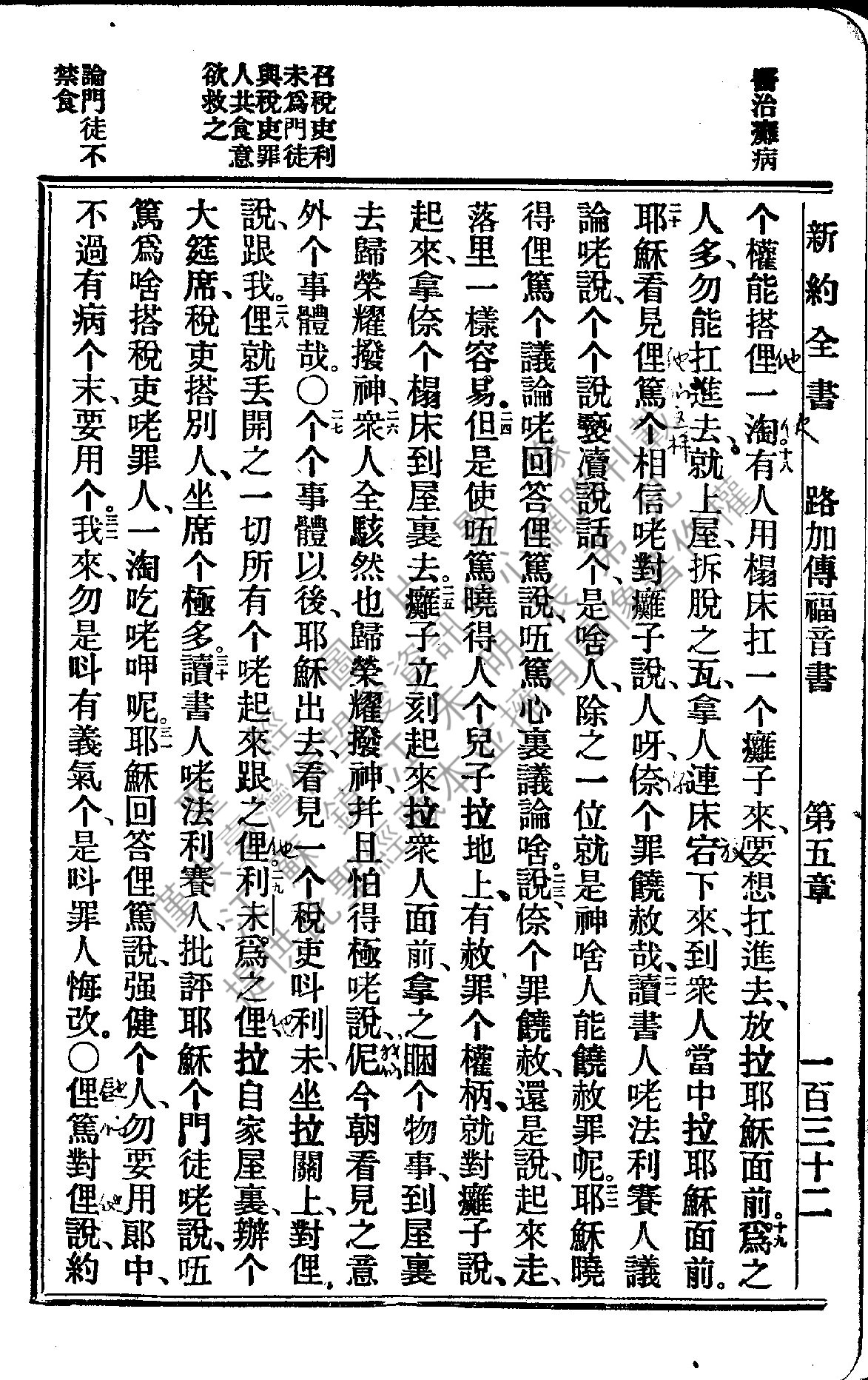 1922年新约全书 路加福音 5 章 18 节到 5 章 33 节
