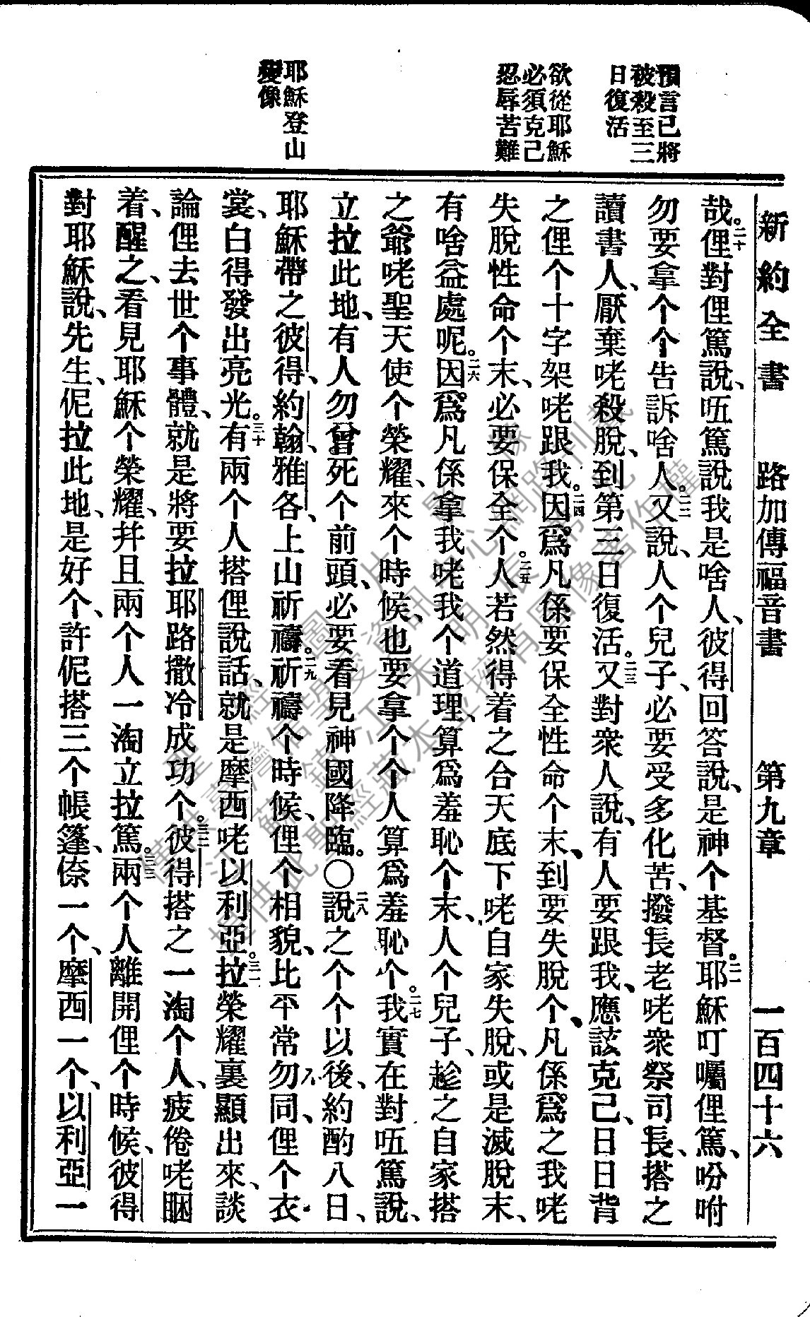 1922年新约全书 路加福音 9 章 20 节到 9 章 33 节