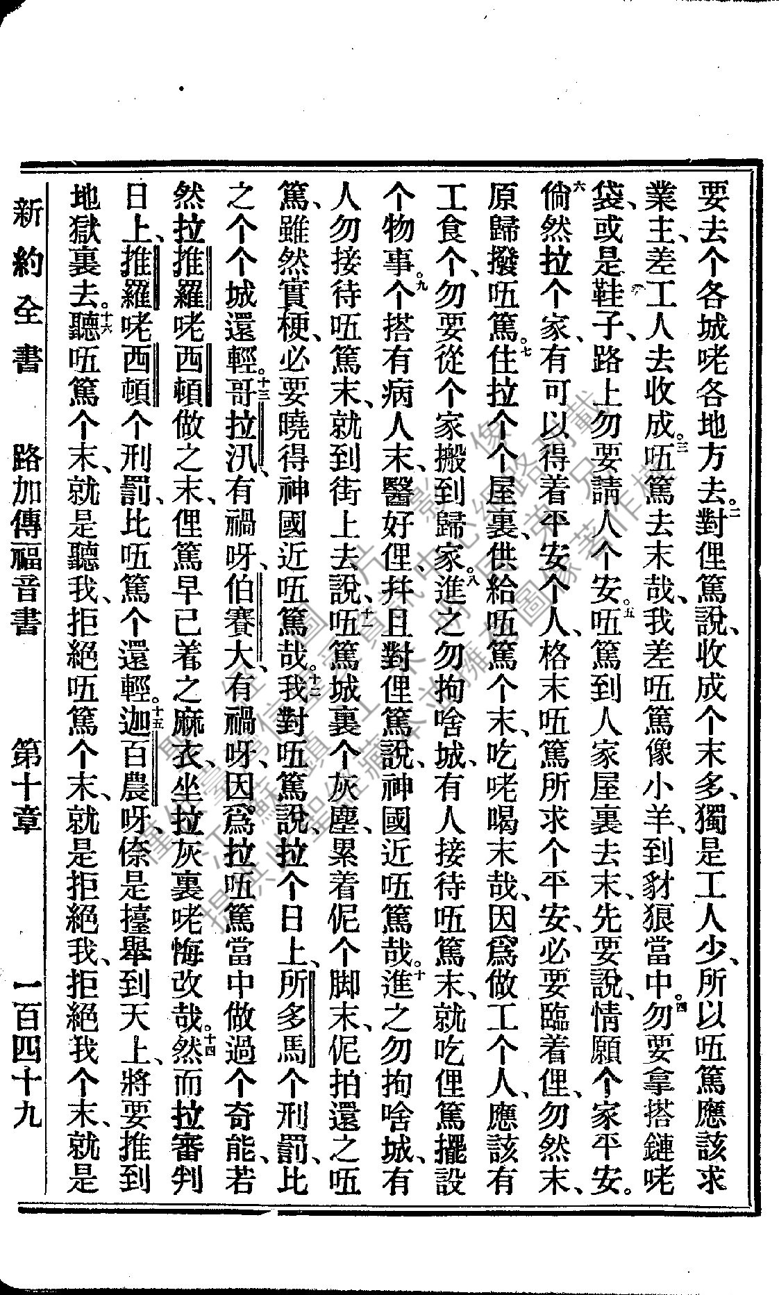 1922年新约全书 路加福音 10 章 2 节到 10 章 16 节
