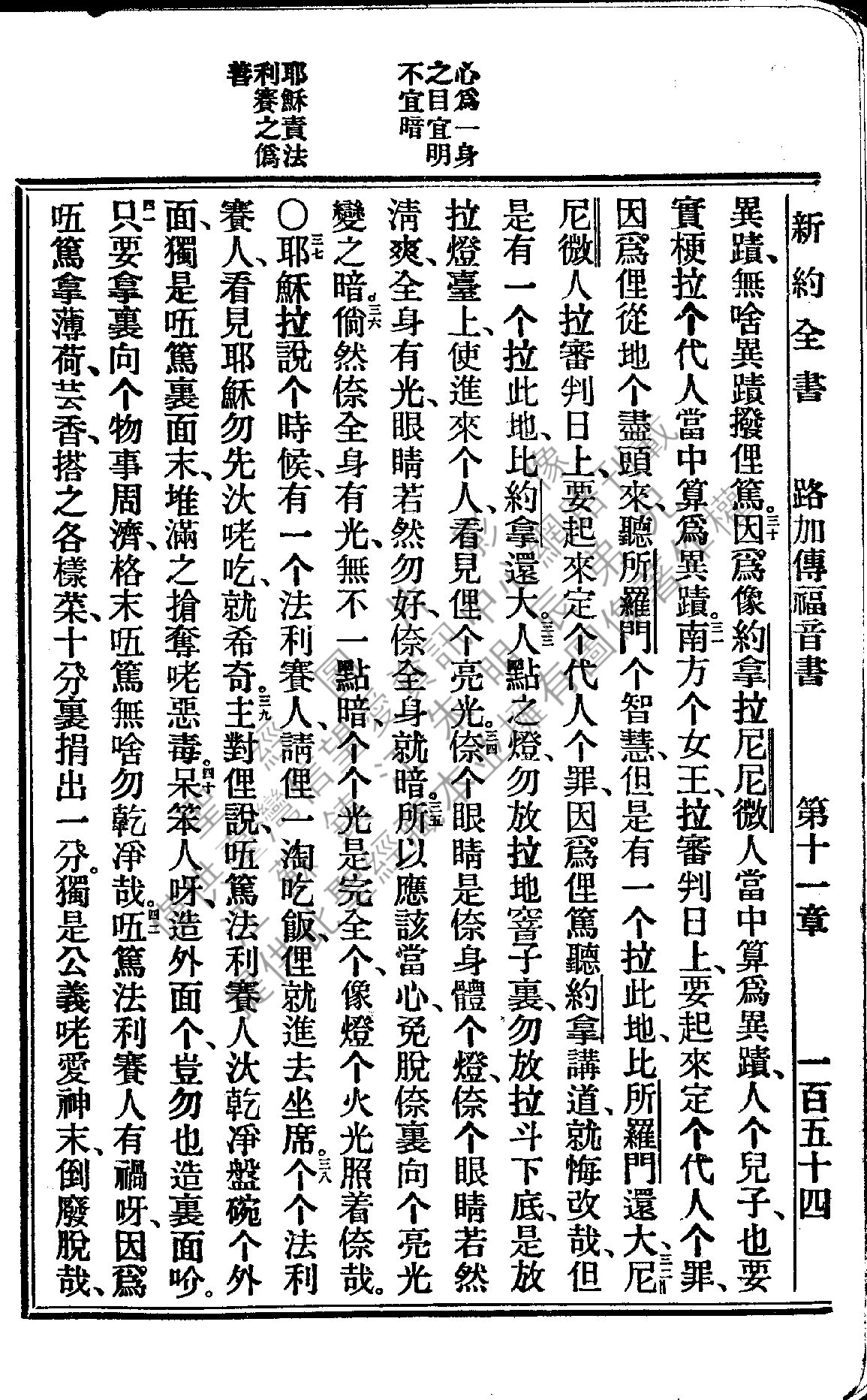 1922年新约全书 路加福音 11 章 30 节到 11 章 42 节