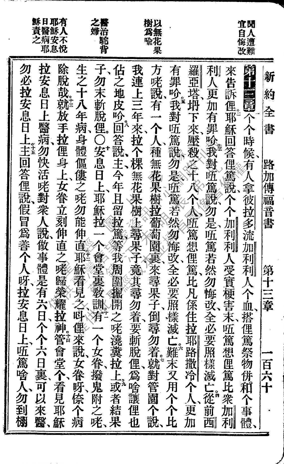 1922年新约全书 路加福音 13 章 1 节到 13 章 15 节