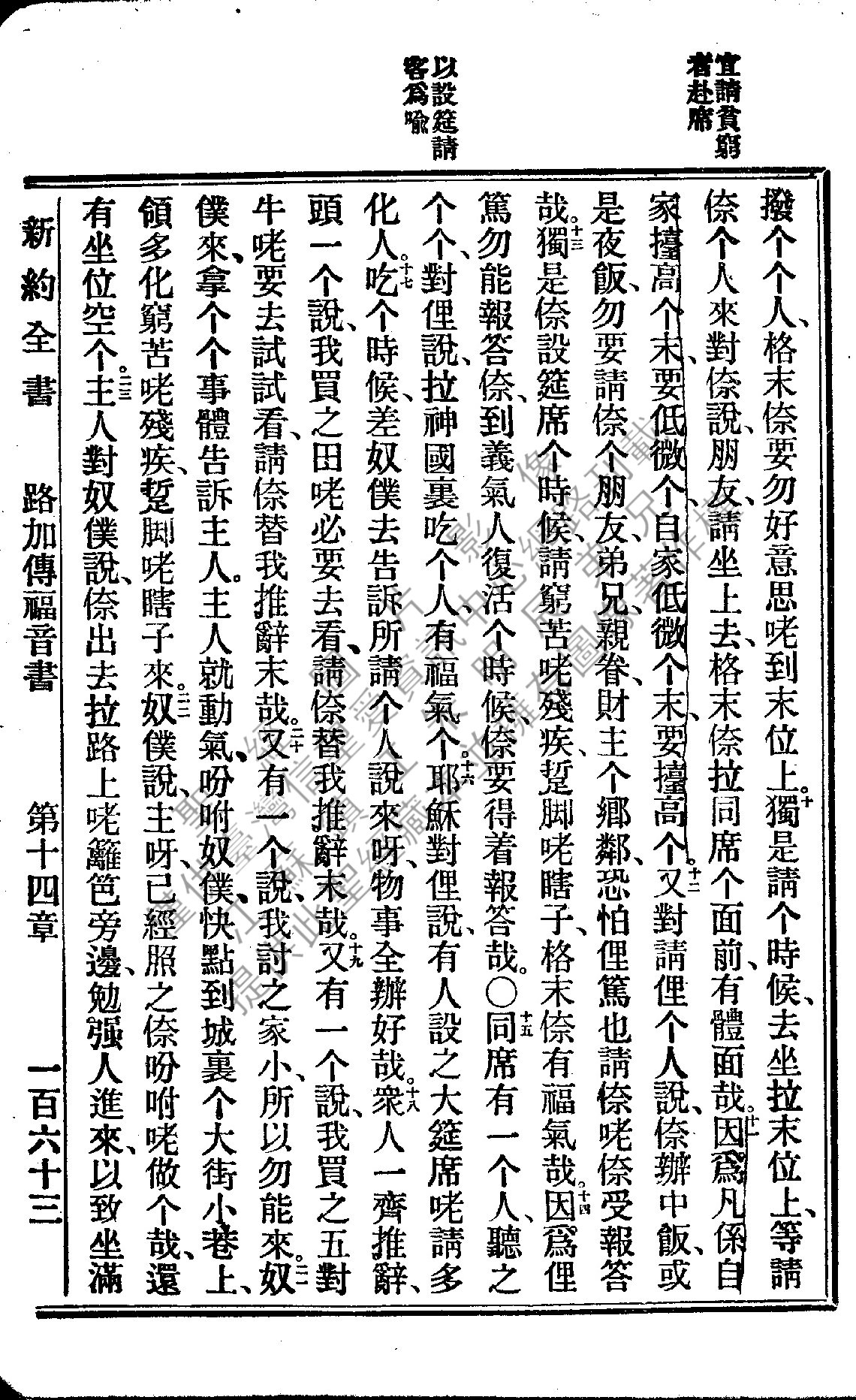 1922年新约全书 路加福音 14 章 10 节到 14 章 23 节