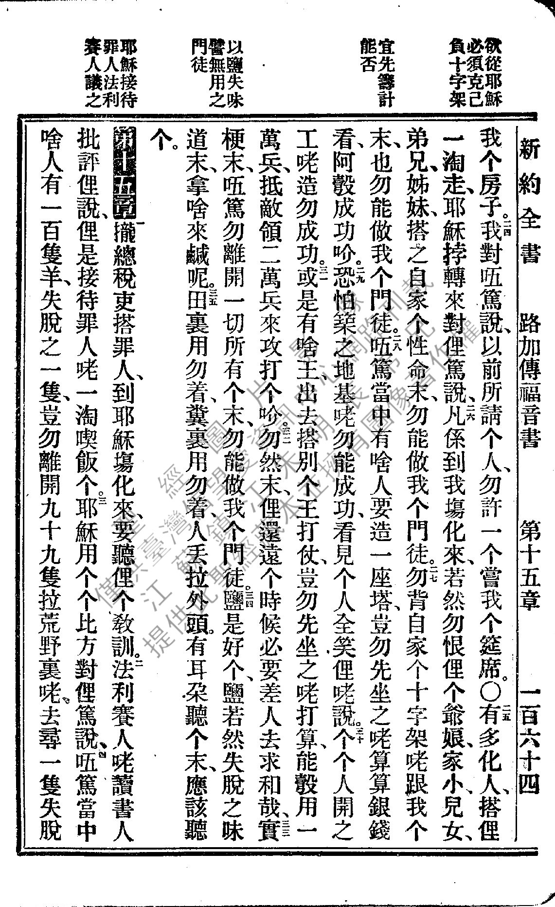 1922年新约全书 路加福音 14 章 24 节到 15 章 4 节