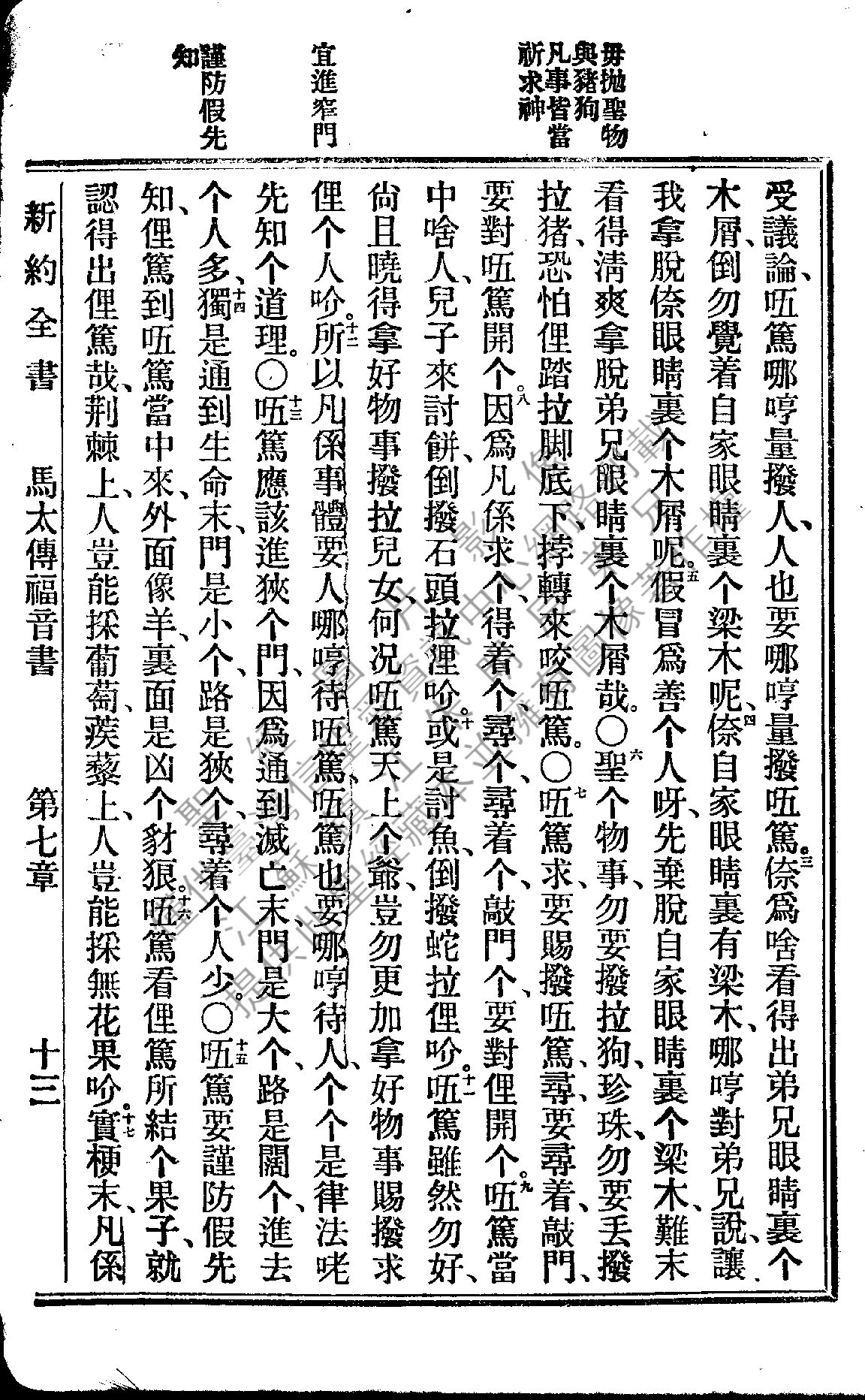 1922年新约全书 马太福音 7 章 3 节到 7 章 17 节