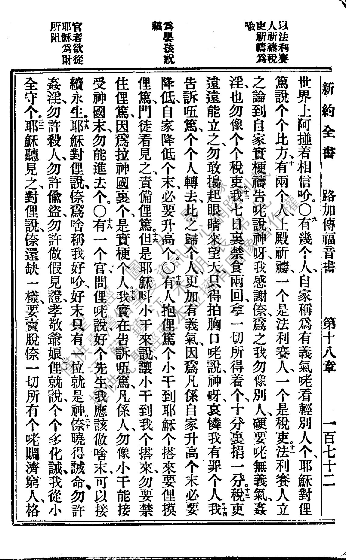 1922年新约全书 路加福音 18 章 9 节到 18 章 22 节