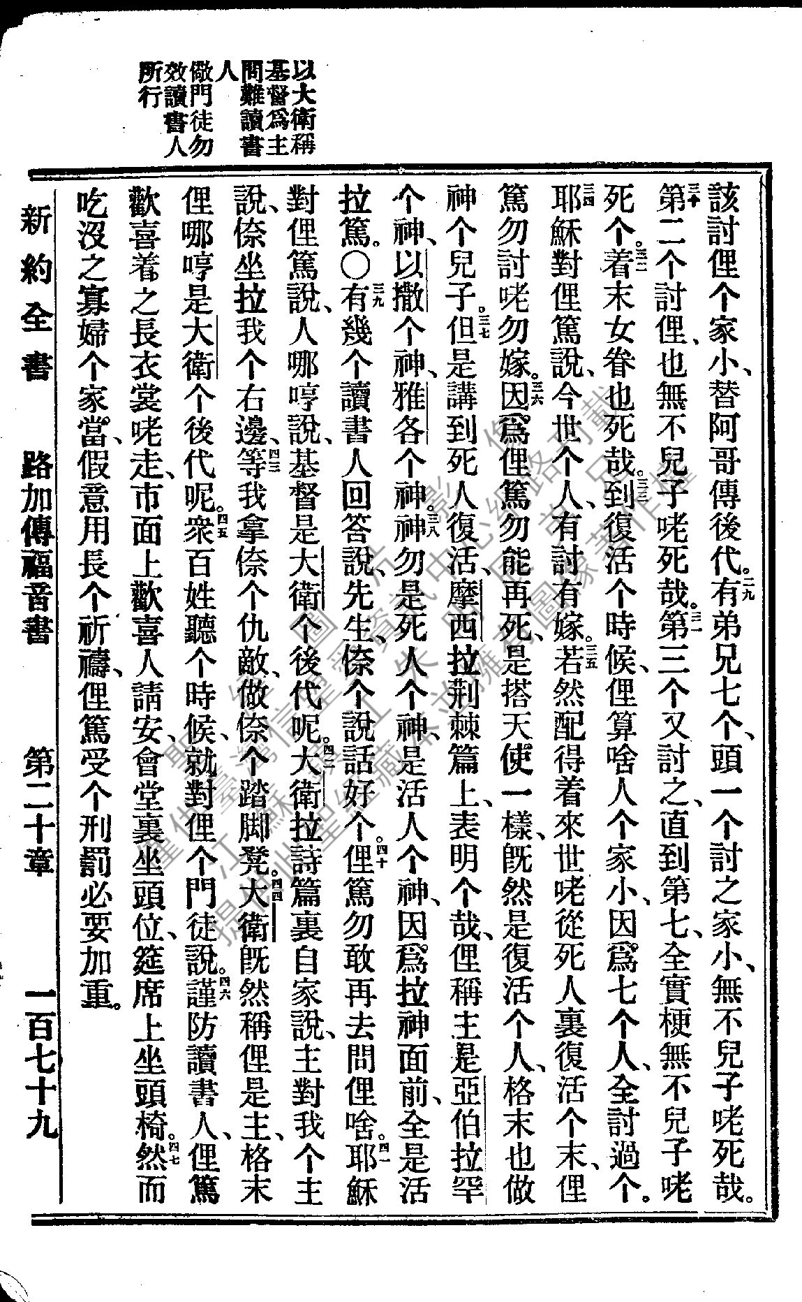 1922年新约全书 路加福音 20 章 29 节到 20 章 47 节