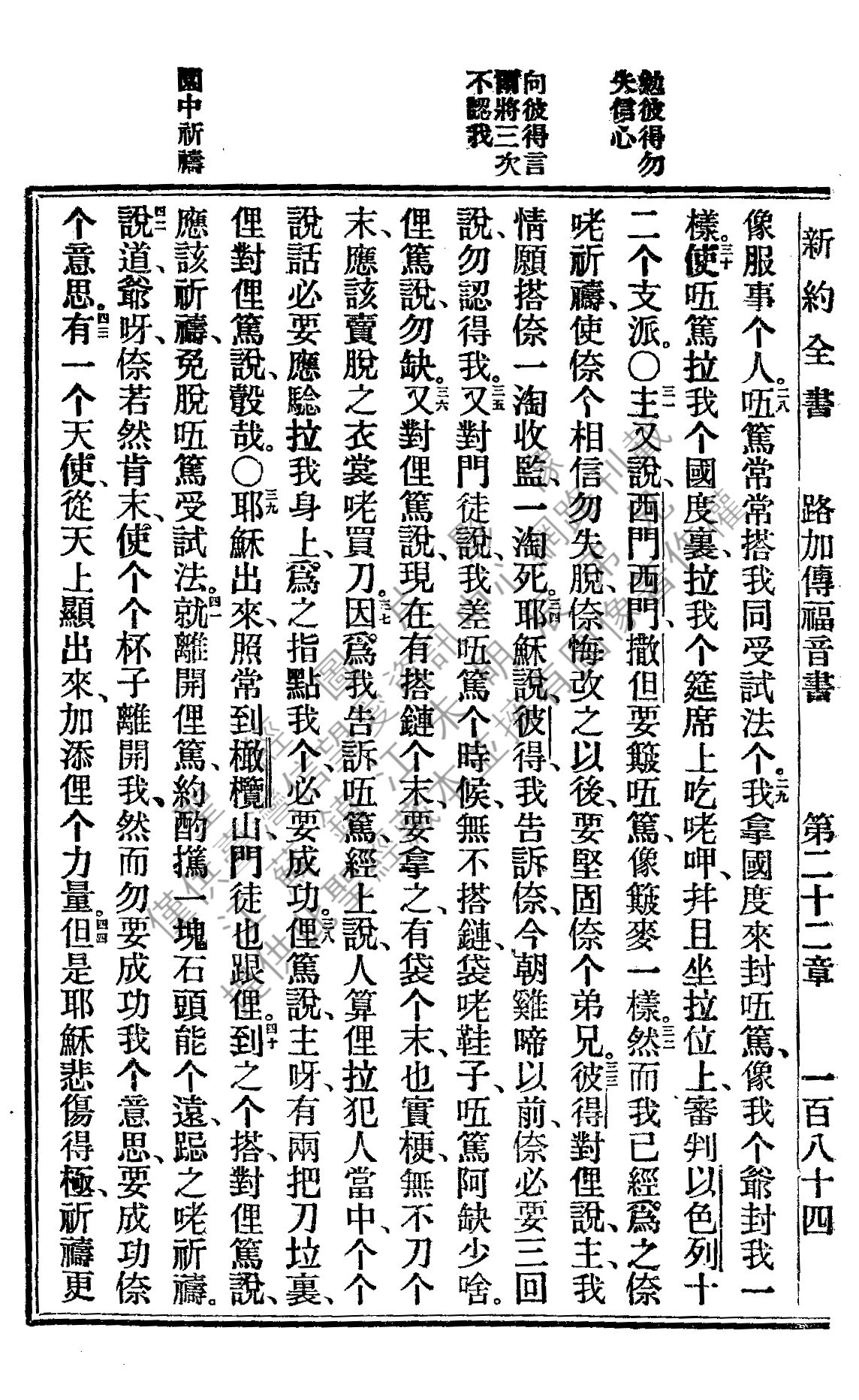 1922年新约全书 路加福音 22 章 28 节到 22 章 44 节