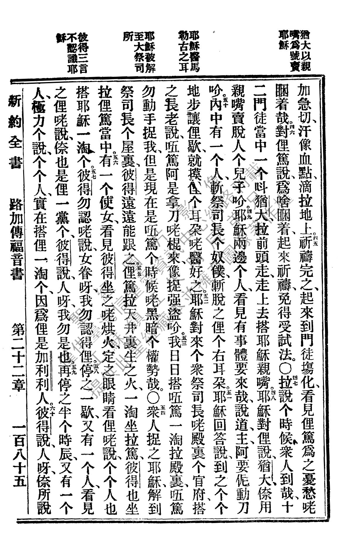 1922年新约全书 路加福音 22 章 45 节到 22 章 60 节