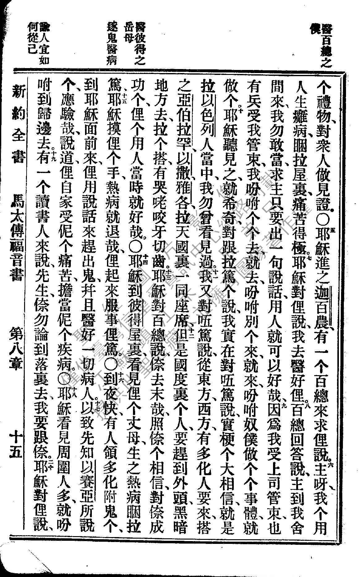 1922年新约全书 马太福音 8 章 5 节到 8 章 20 节