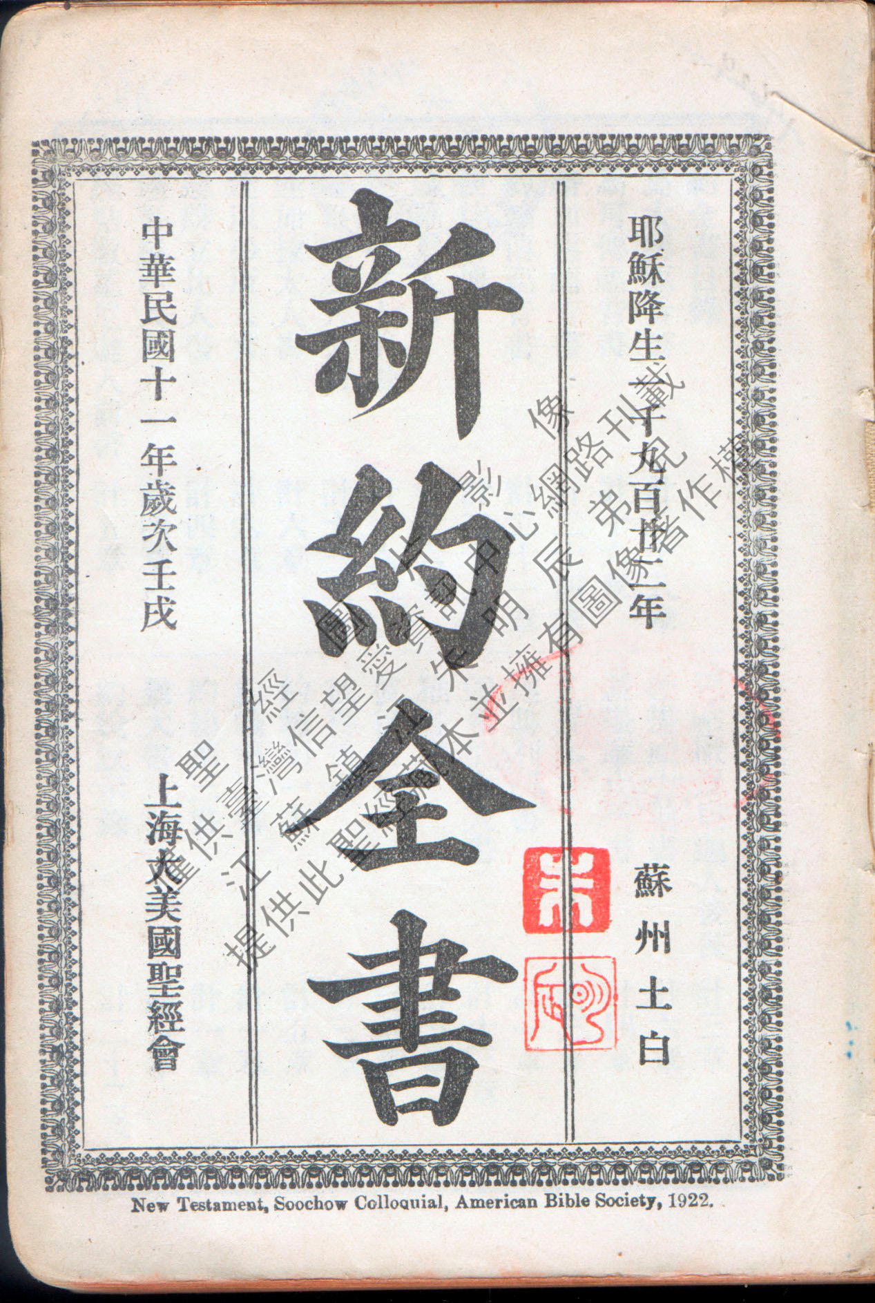 1922年新约全书 封面 0 章 1 节到 0 章 1 节