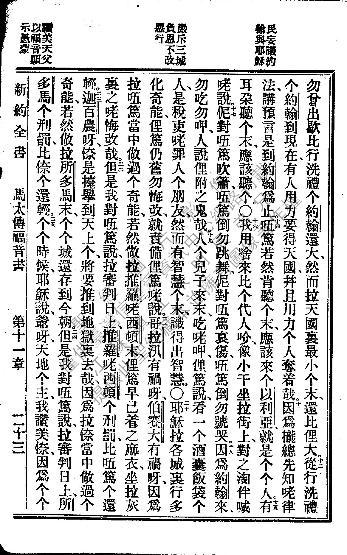 1922年新约全书 马太福音 11 章 12 节到 11 章 25 节
