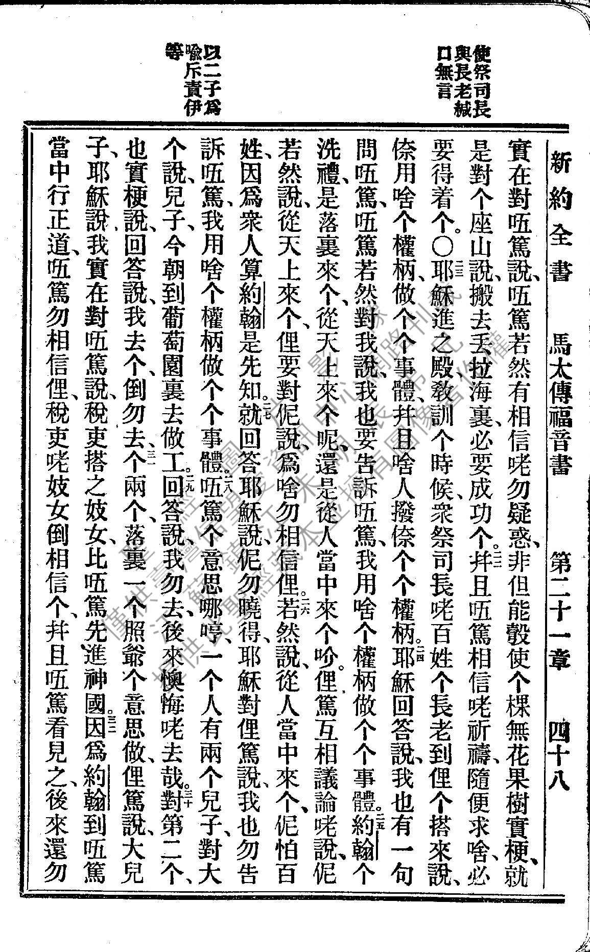 1922年新约全书 马太福音 21 章 22 节到 21 章 32 节