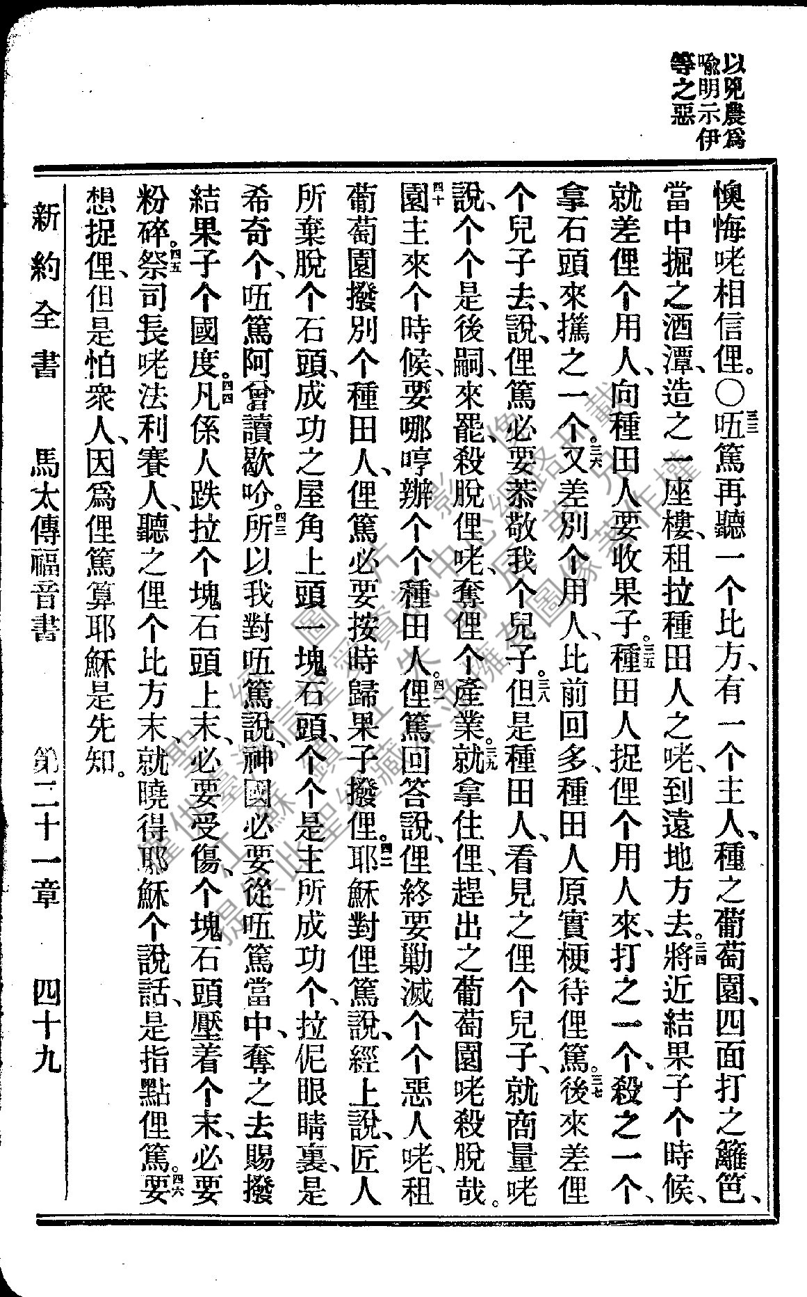 1922年新约全书 马太福音 21 章 33 节到 21 章 46 节