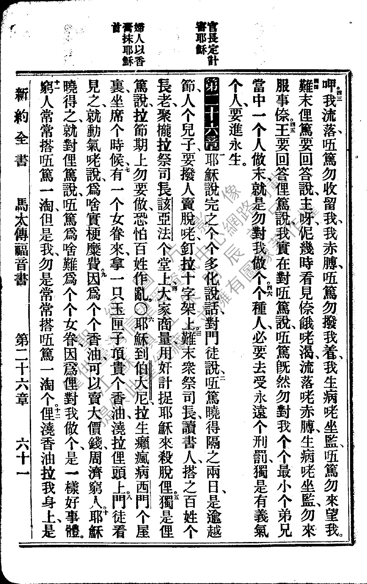 1922年新约全书 马太福音 25 章 43 节到 26 章 12 节