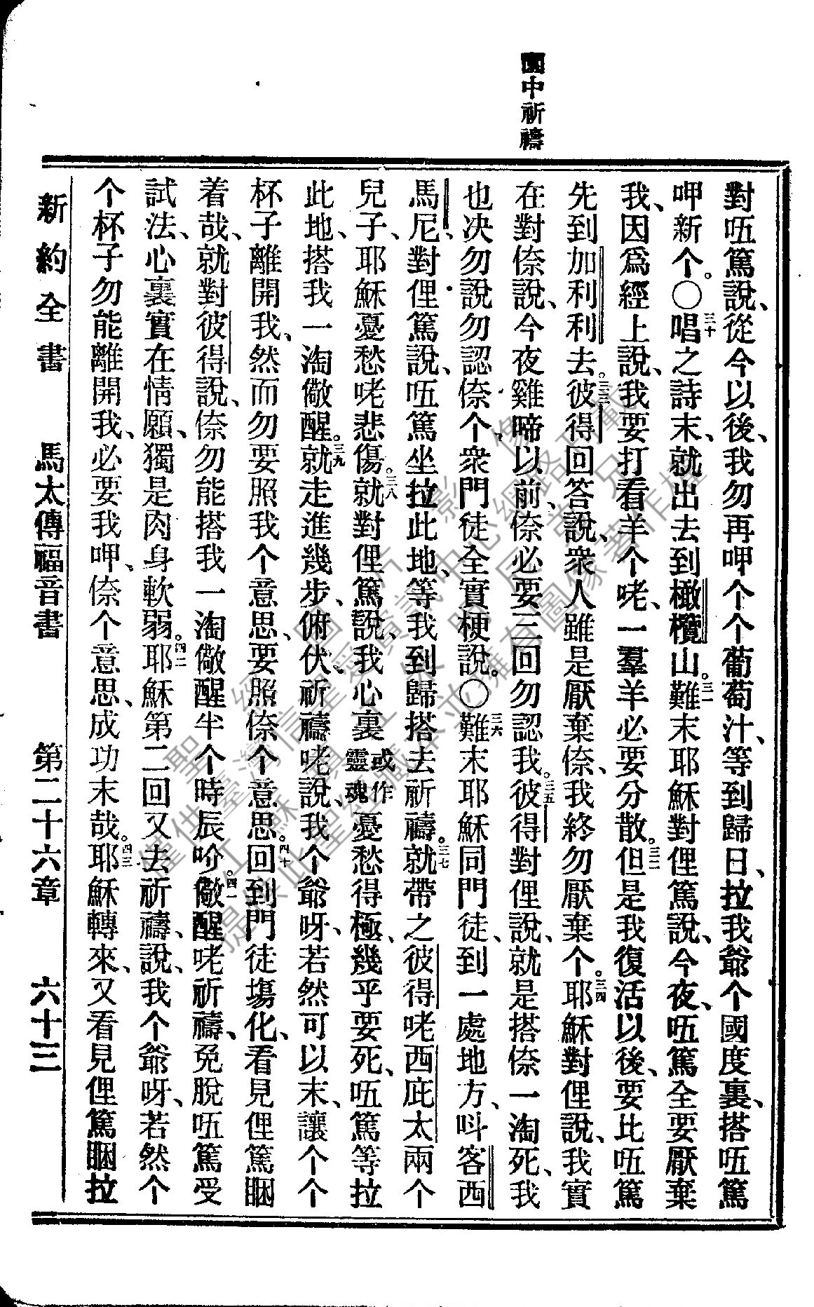 1922年新约全书 马太福音 26 章 30 节到 26 章 43 节