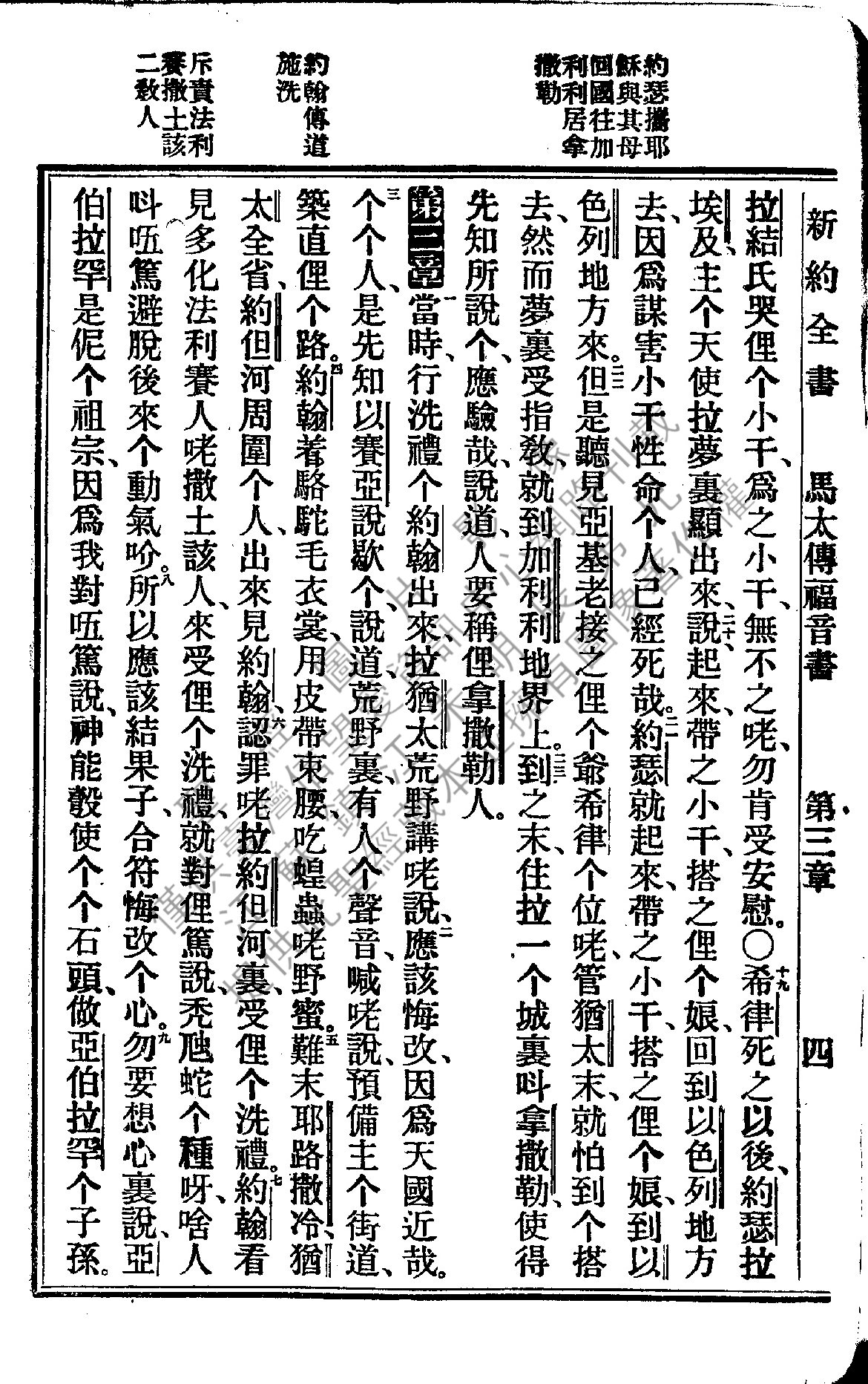 1922年新约全书 马太福音 2 章 19 节到 3 章 9 节