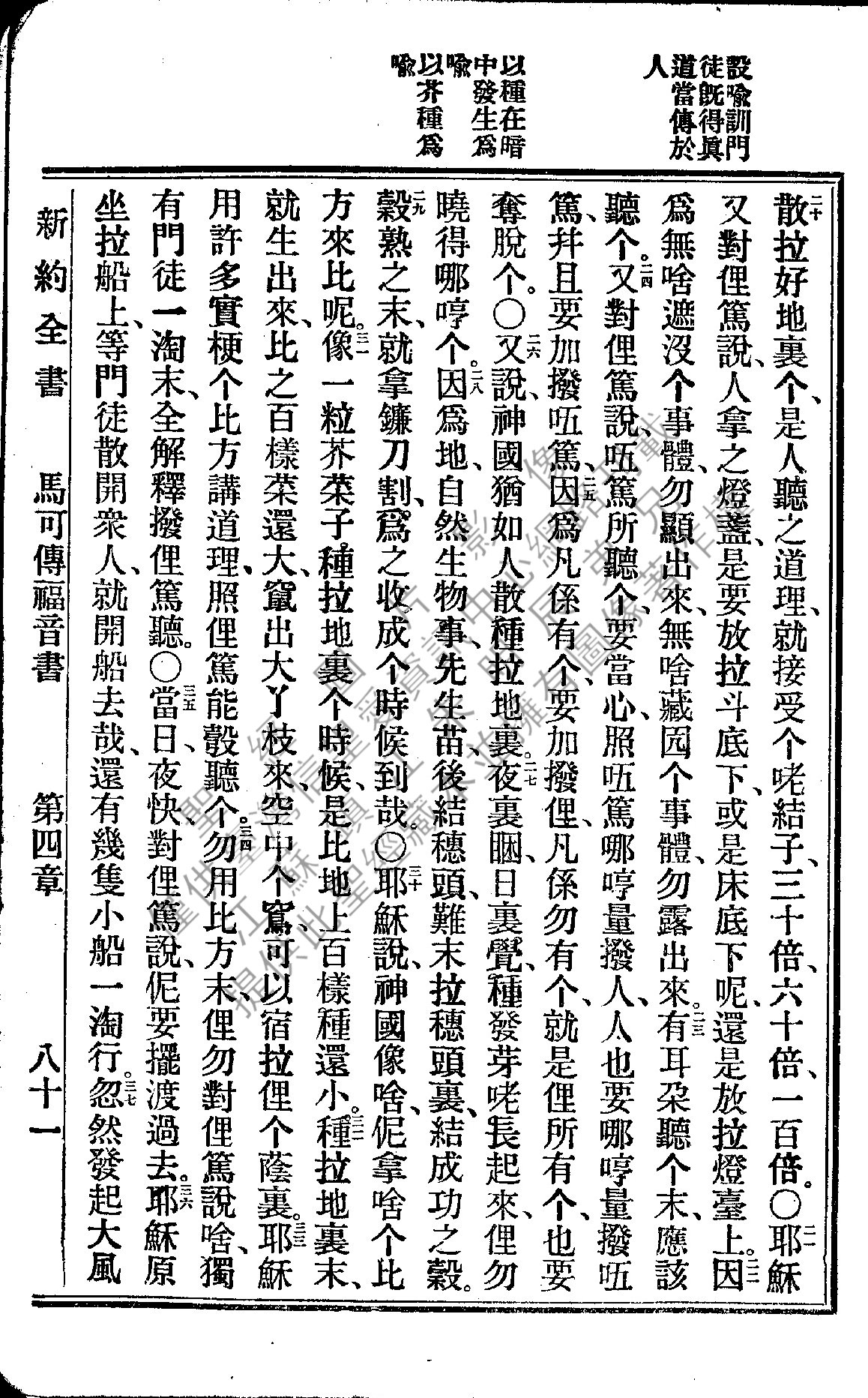 1922年新约全书 马可福音 4 章 20 节到 4 章 37 节