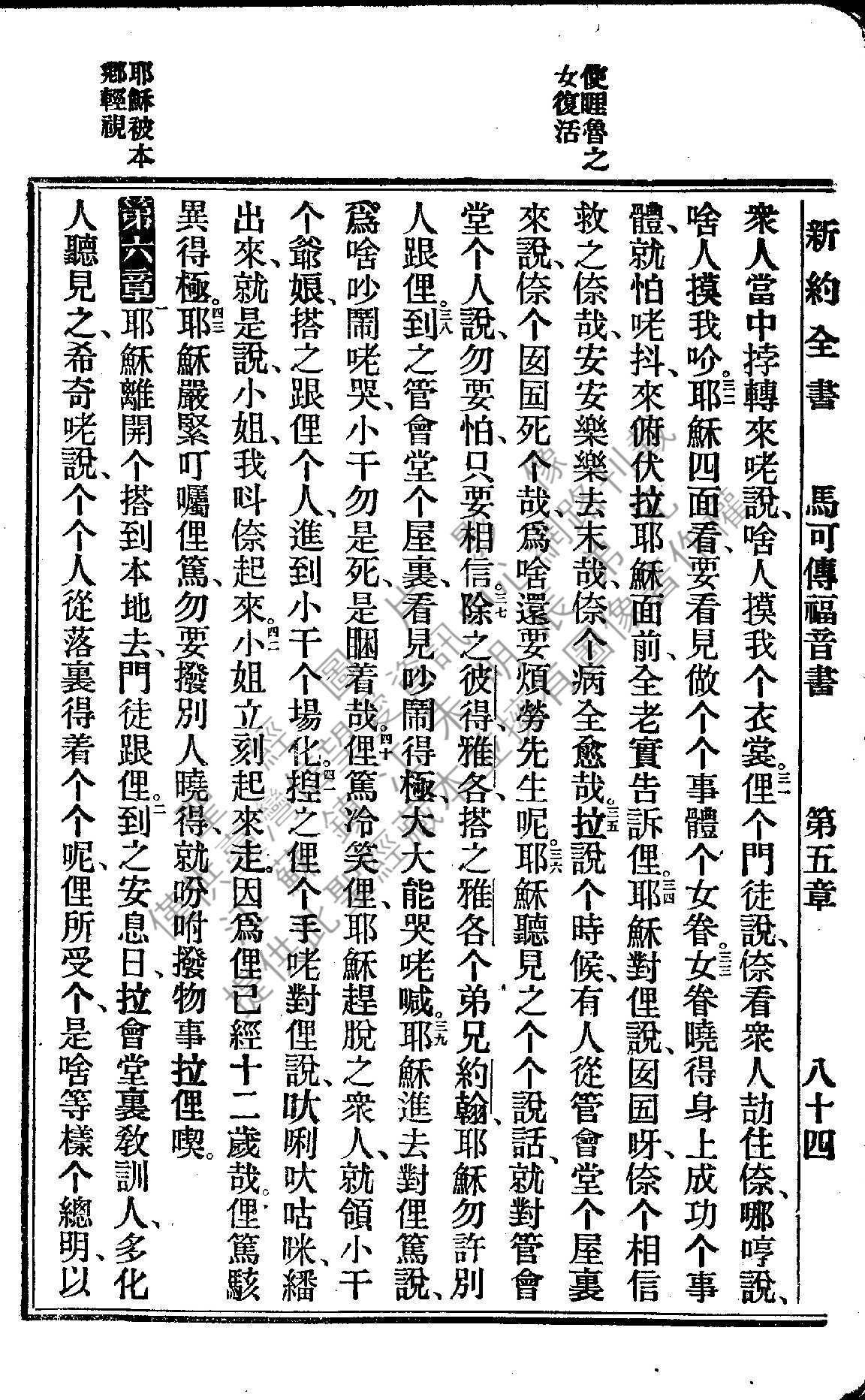 1922年新约全书 马可福音 5 章 31 节到 6 章 2 节
