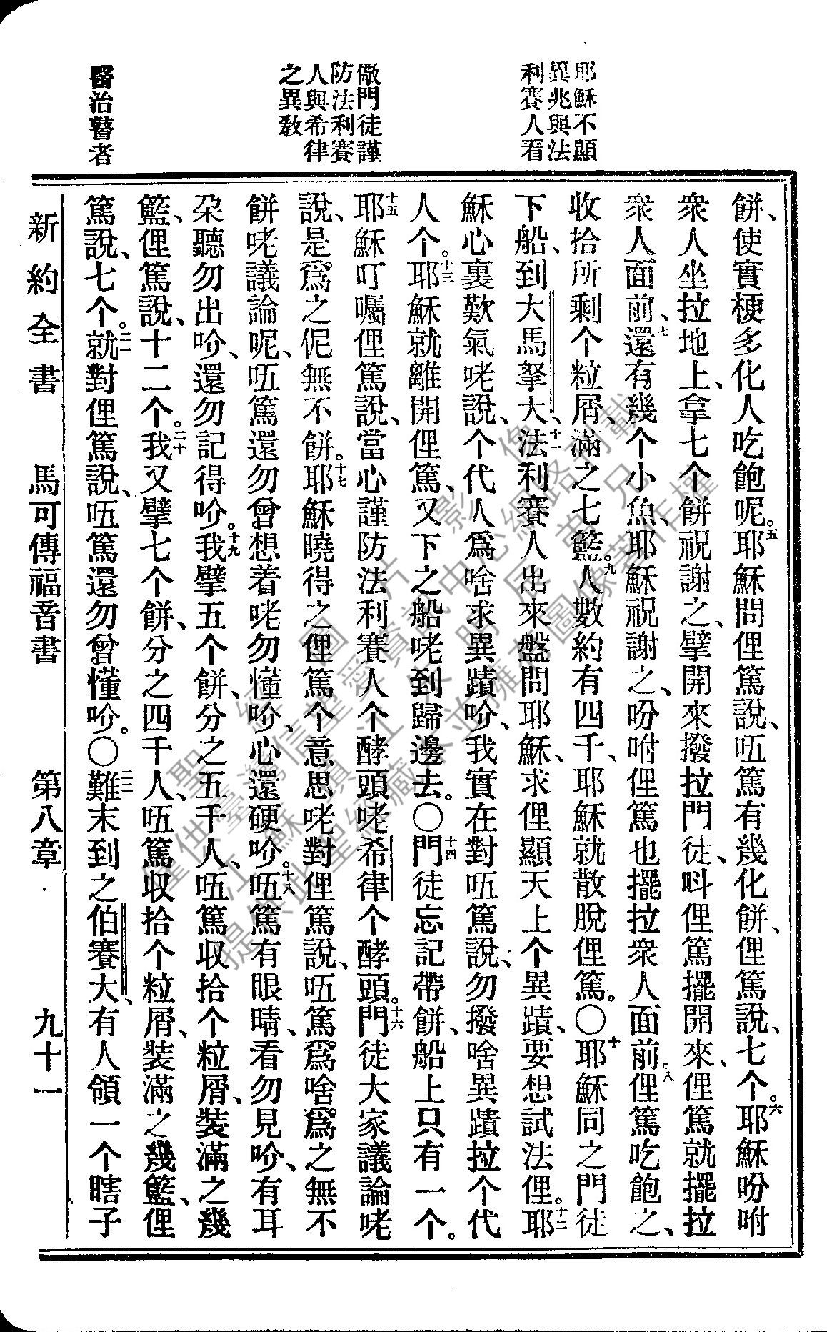 1922年新约全书 马可福音 8 章 5 节到 8 章 22 节