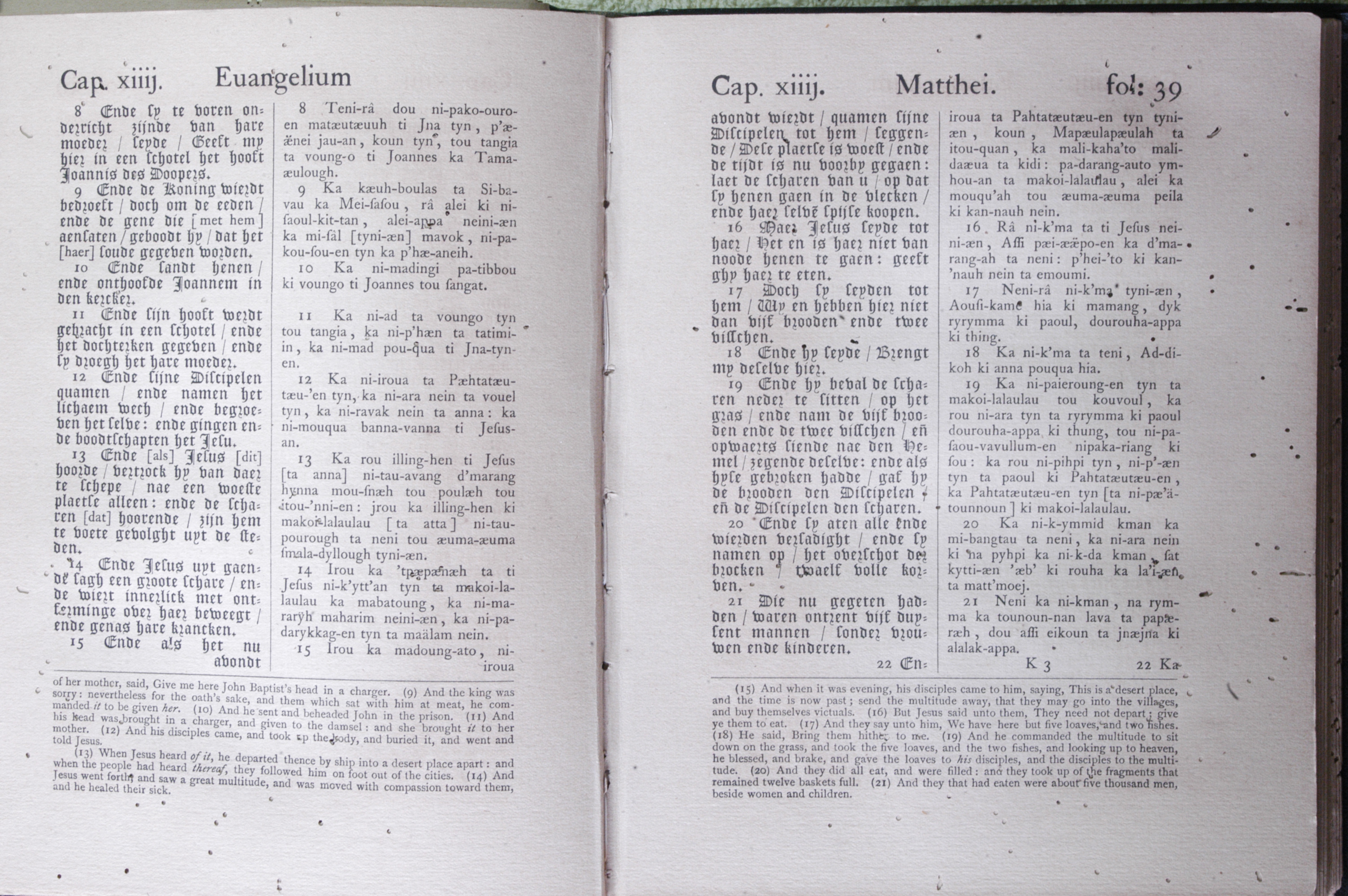 1888年新港譯本馬太福音 馬太福音 14 章 8 節到 14 章 21 節