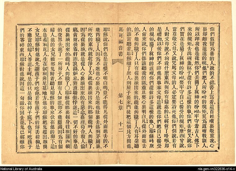 1867年新約馬可福音 馬可福音 7 章 7 節到 7 章 29 節