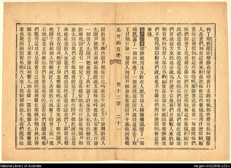 1867年新約馬可福音 馬可福音 11 章 28 節到 12 章 14 節
