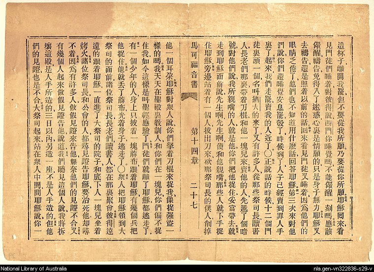 1867年新約馬可福音 馬可福音 14 章 37 節到 14 章 60 節