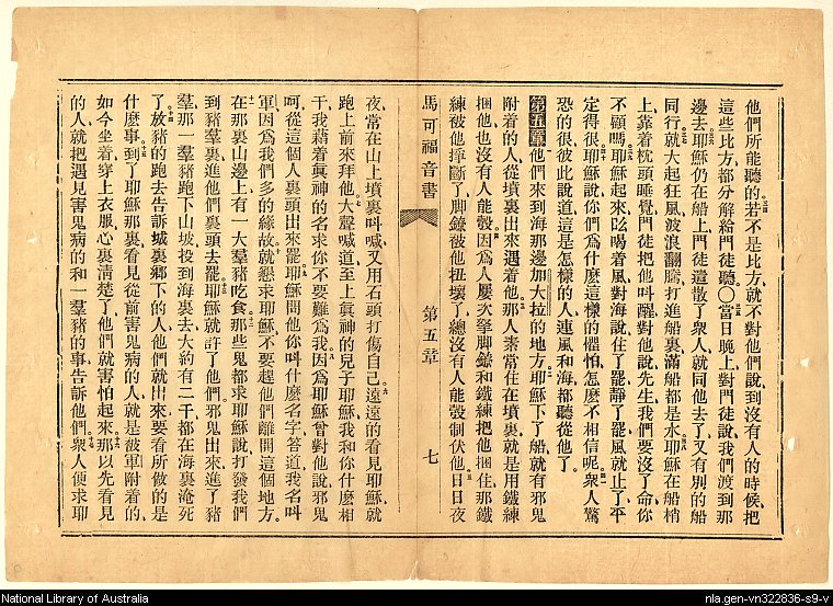 1867年新約馬可福音 馬可福音 4 章 34 節到 5 章 17 節