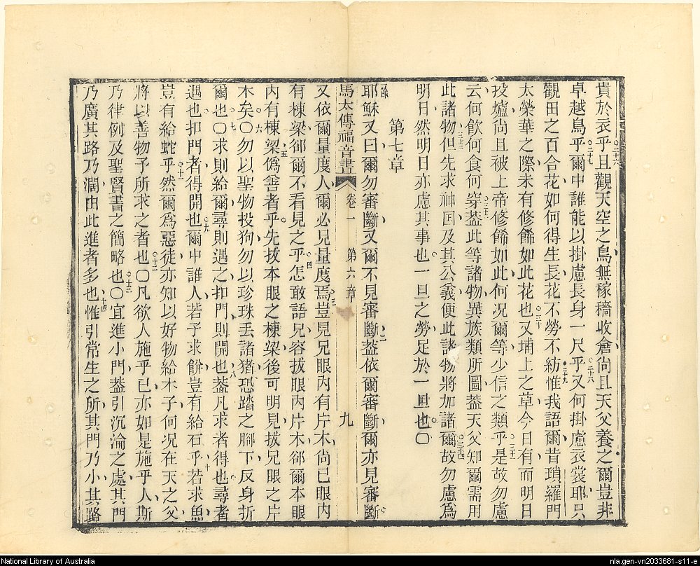 1853年新遺詔聖書:馬太傳福音 馬太福音 6 章 26 節到 7 章 14 節