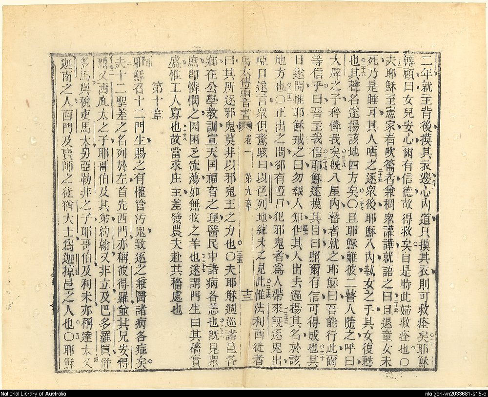1853年新遺詔聖書:馬太傳福音 馬太福音 9 章 21 節到 10 章 5 節