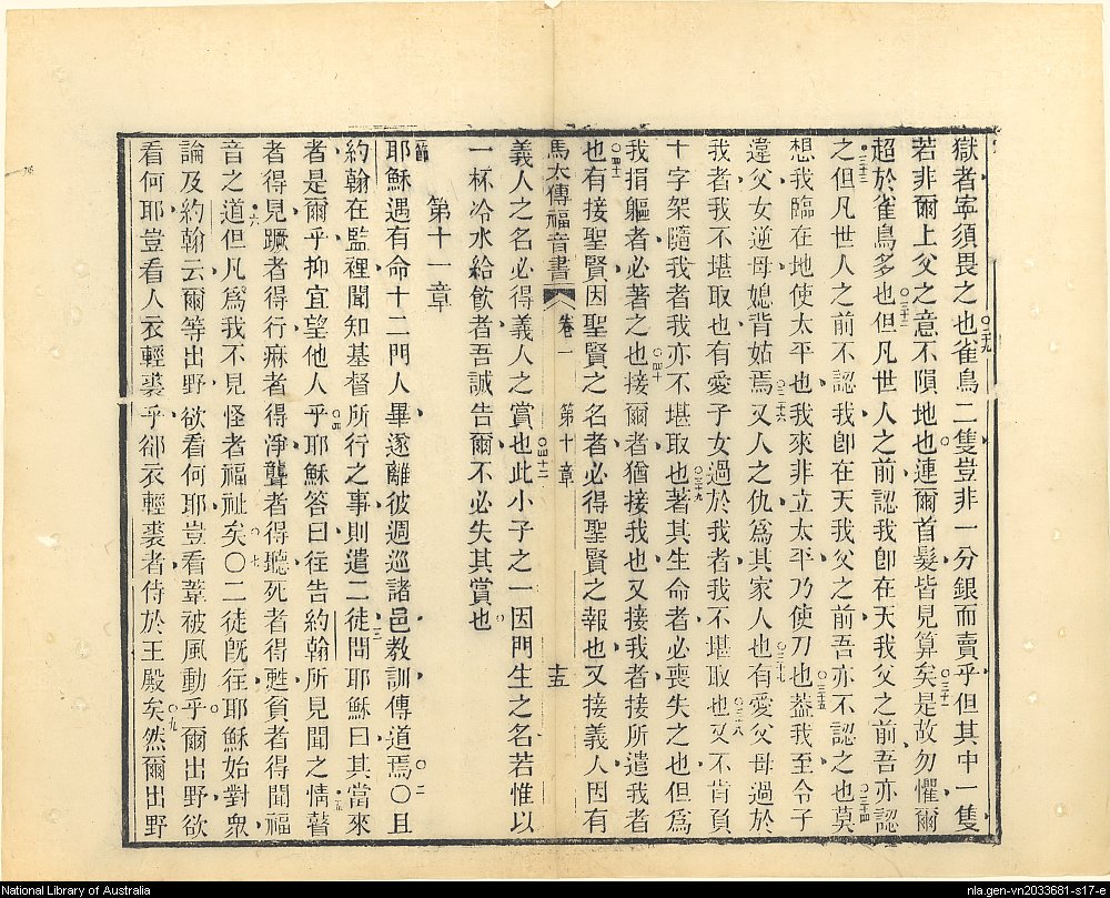 1853年新遺詔聖書:馬太傳福音 馬太福音 10 章 29 節到 11 章 9 節
