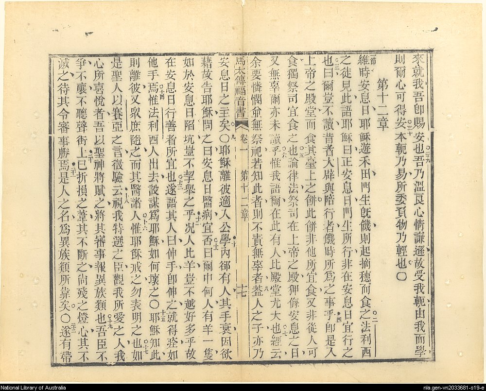 1853年新遺詔聖書:馬太傳福音 馬太福音 11 章 29 節到 12 章 22 節