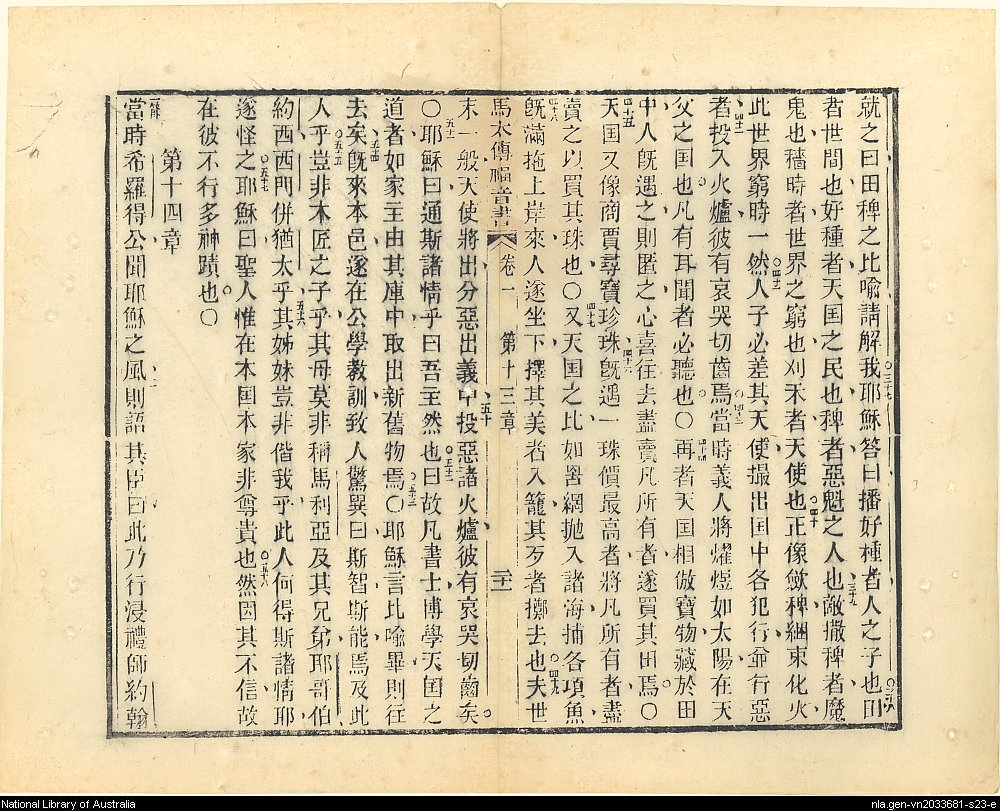 1853年新遺詔聖書:馬太傳福音 馬太福音 13 章 37 節到 14 章 2 節