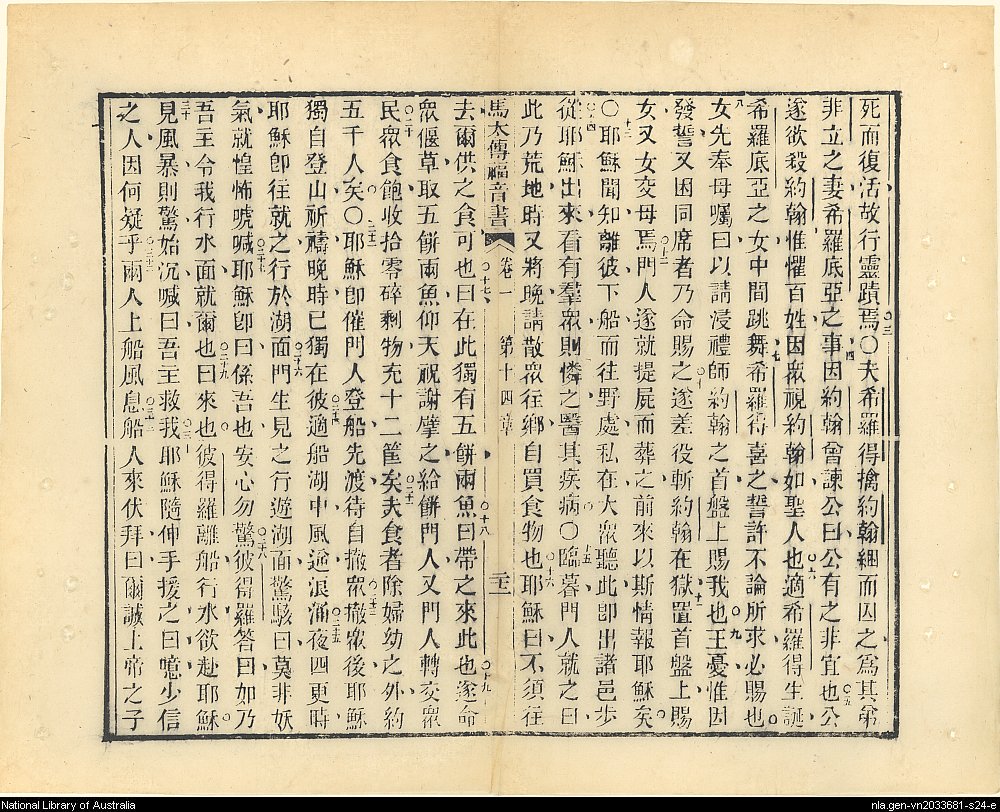 1853年新遺詔聖書:馬太傳福音 馬太福音 14 章 3 節到 14 章 33 節