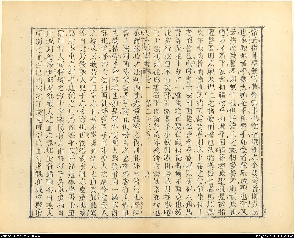 1853年新遺詔聖書:馬太傳福音 馬太福音 23 章 17 節到 23 章 35 節
