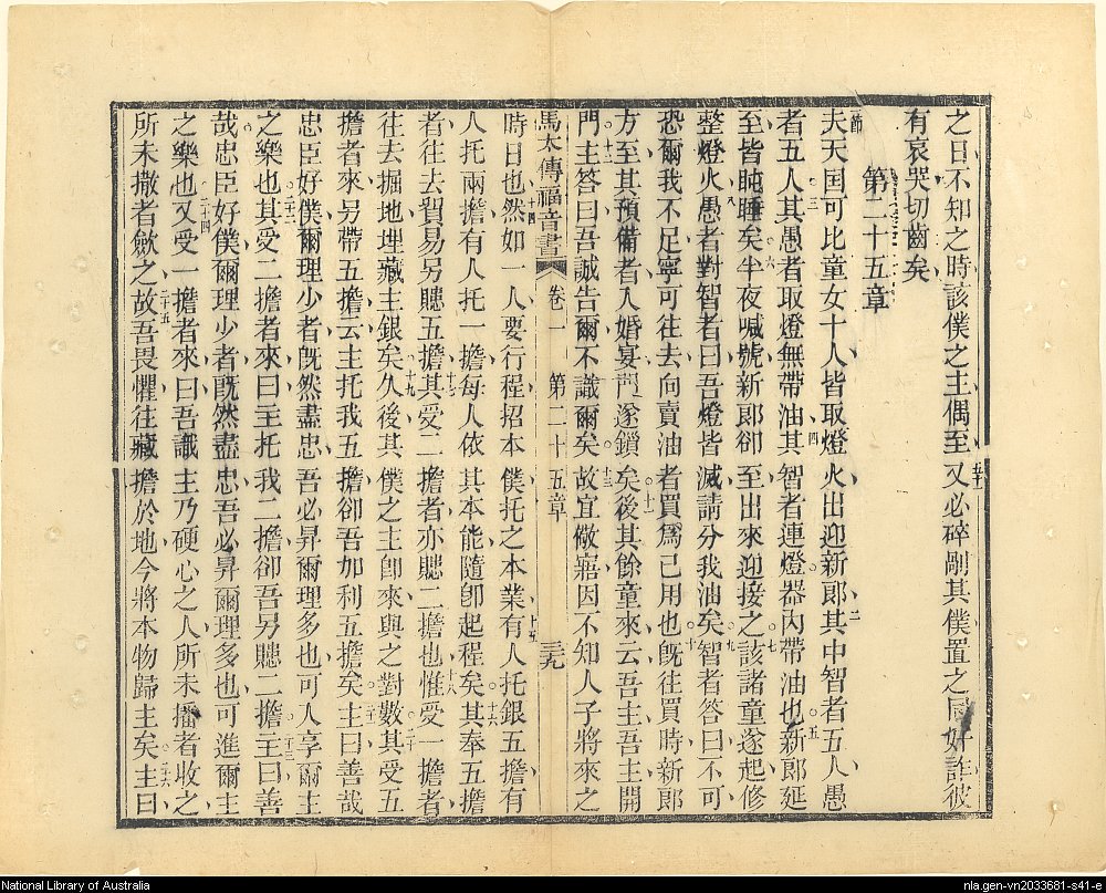 1853年新遺詔聖書:馬太傳福音 馬太福音 24 章 51 節到 25 章 26 節