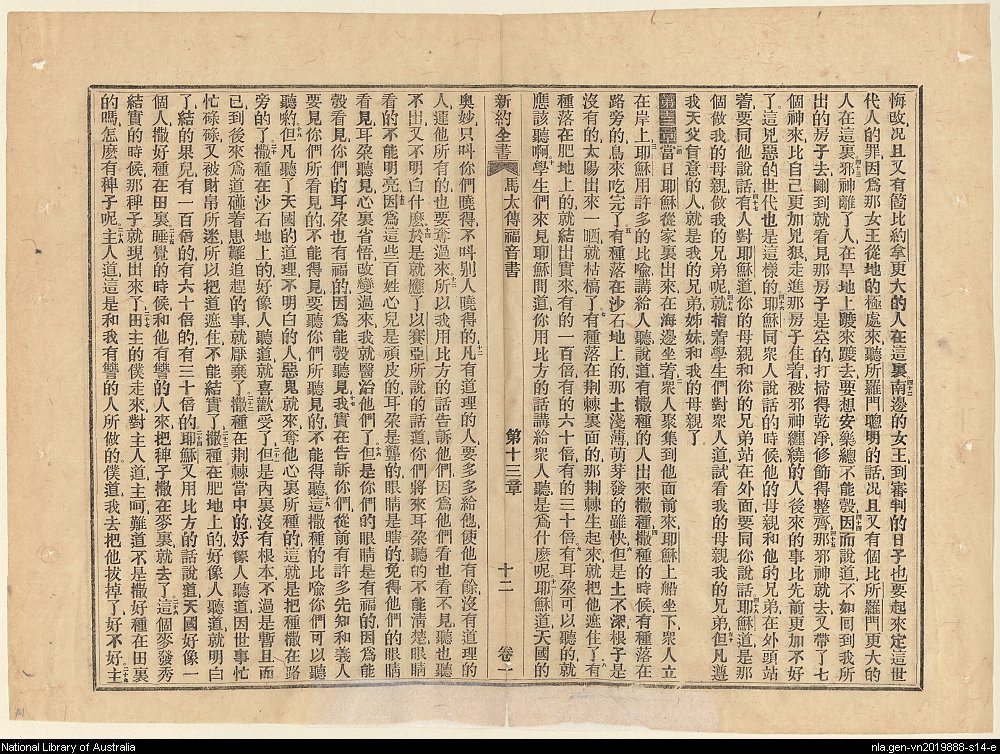1856年新約四福音使徒行傳(南京官話譯本) 馬太福音 12 章 42 節到 13 章 29 節
